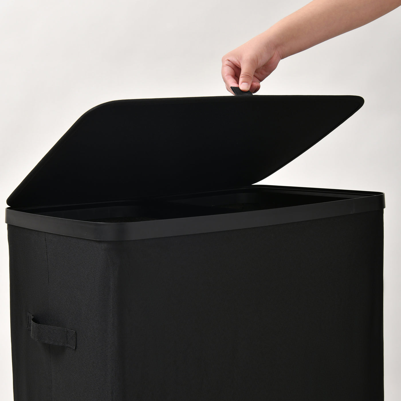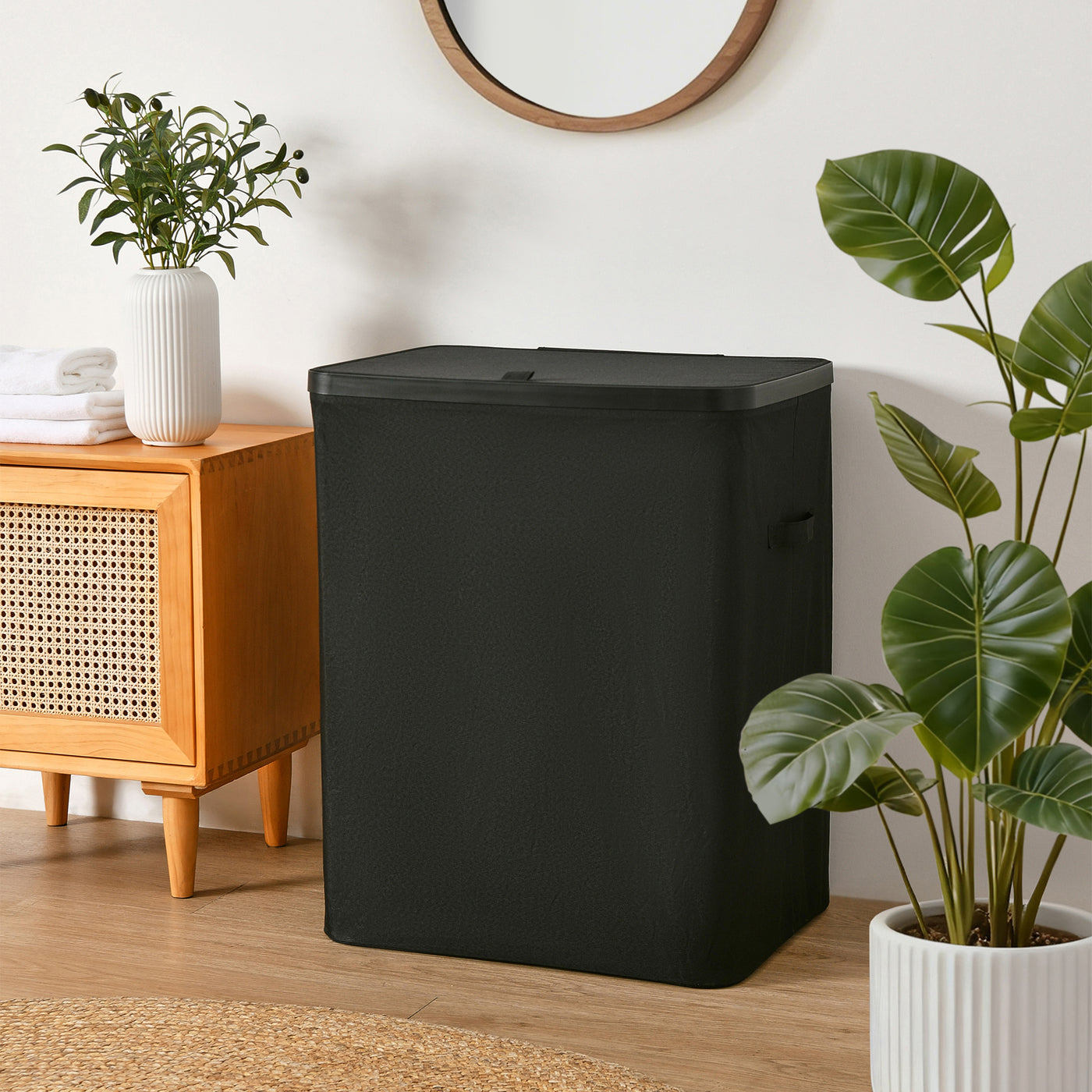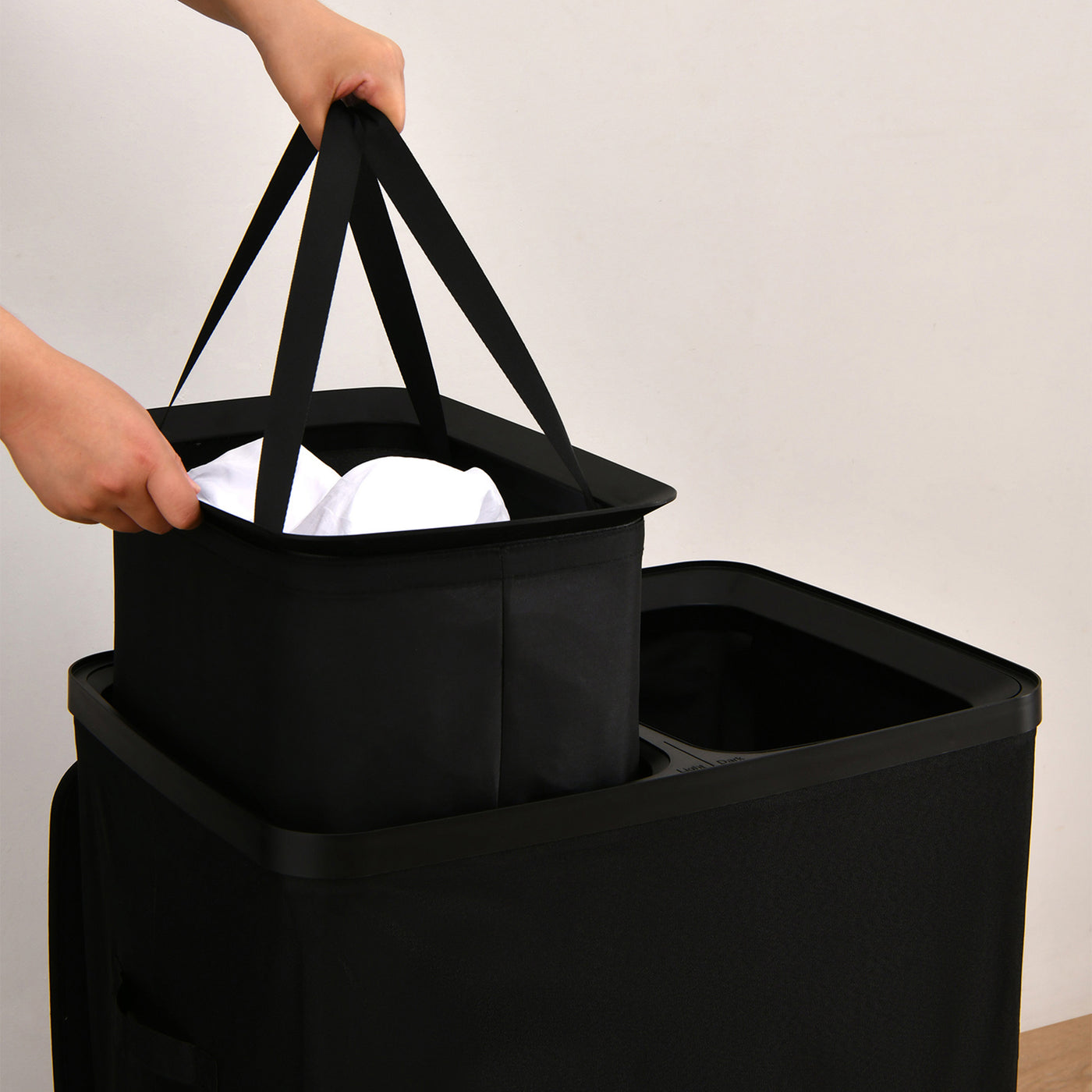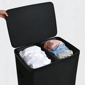 Voyager 2-Section Laundry Hamper 100L Faux Linen 56x40x67cm Black