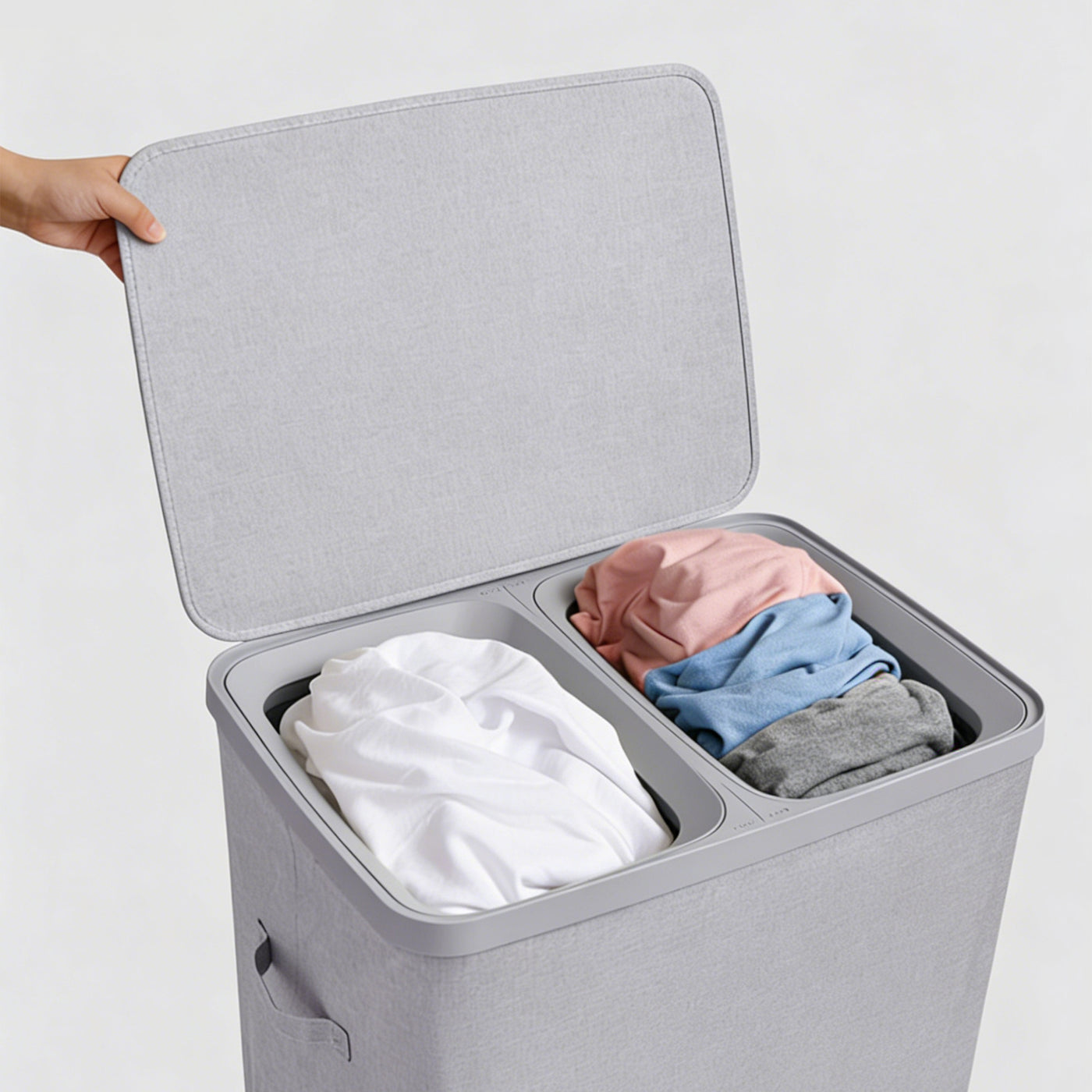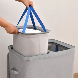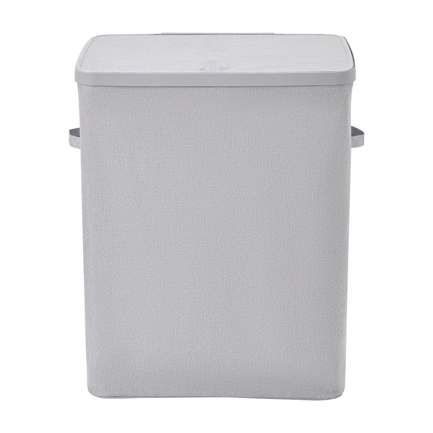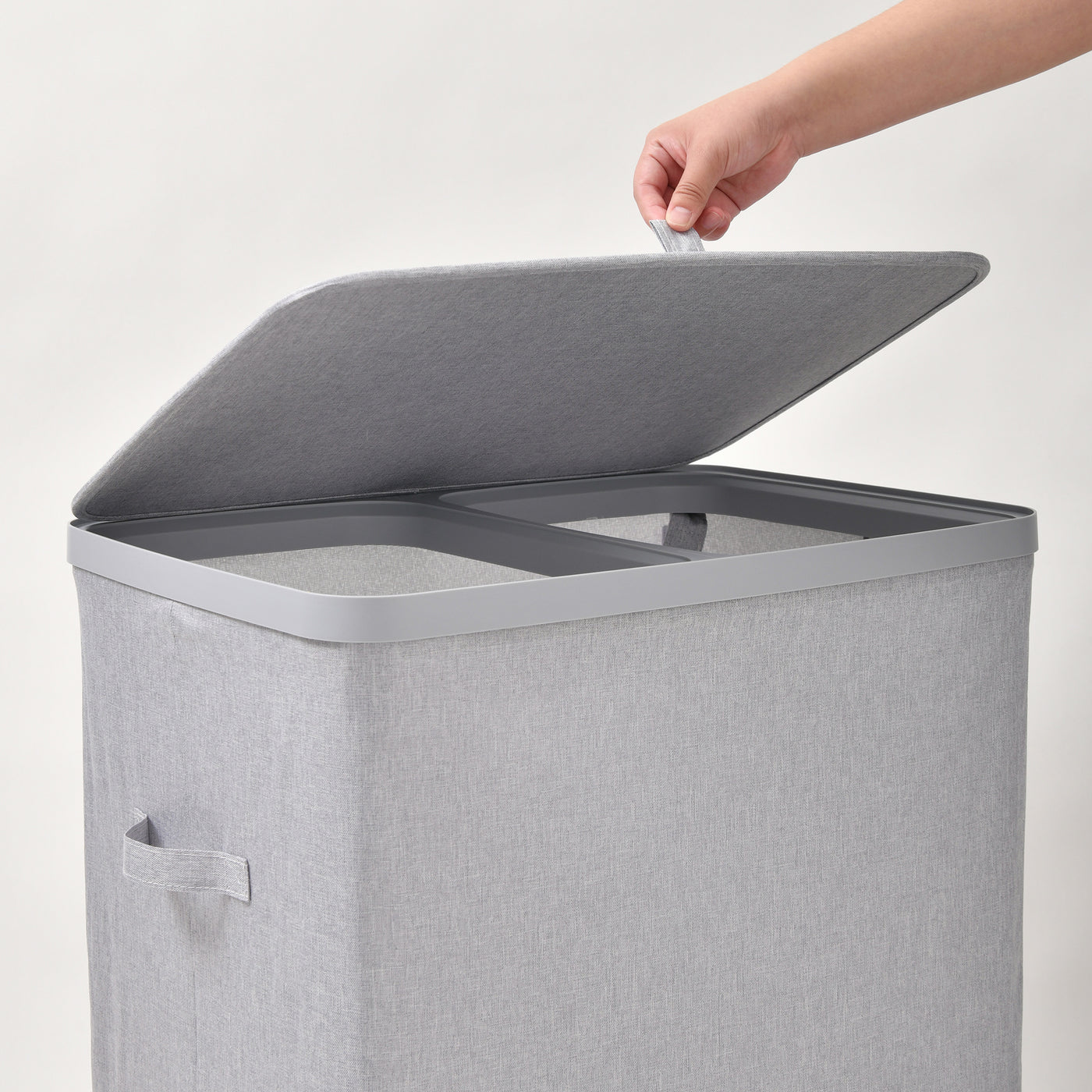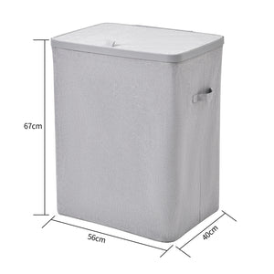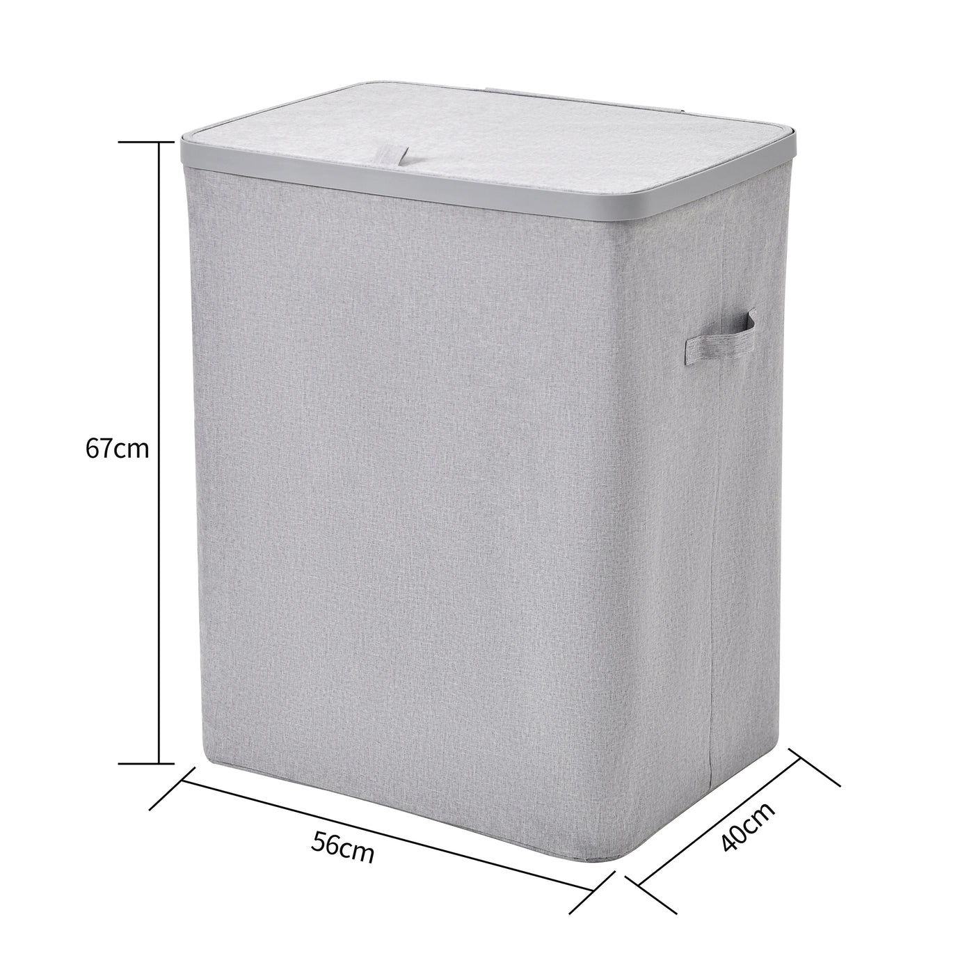 Voyager 2-Section Laundry Hamper 100L Faux Linen 56x40x67cm Grey