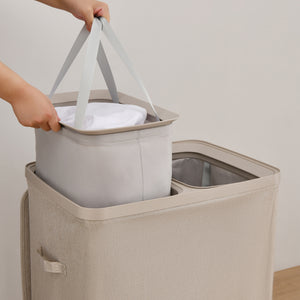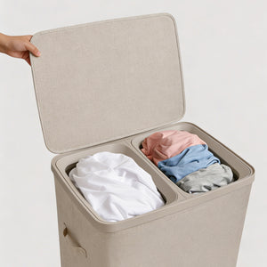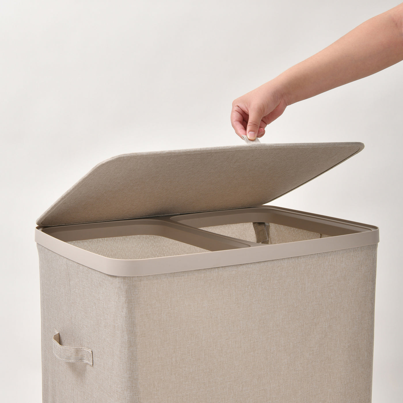Voyager 2-Section Laundry Hamper 100L Faux Linen 56x40x67cm Natural