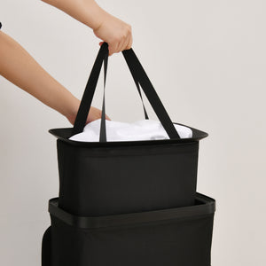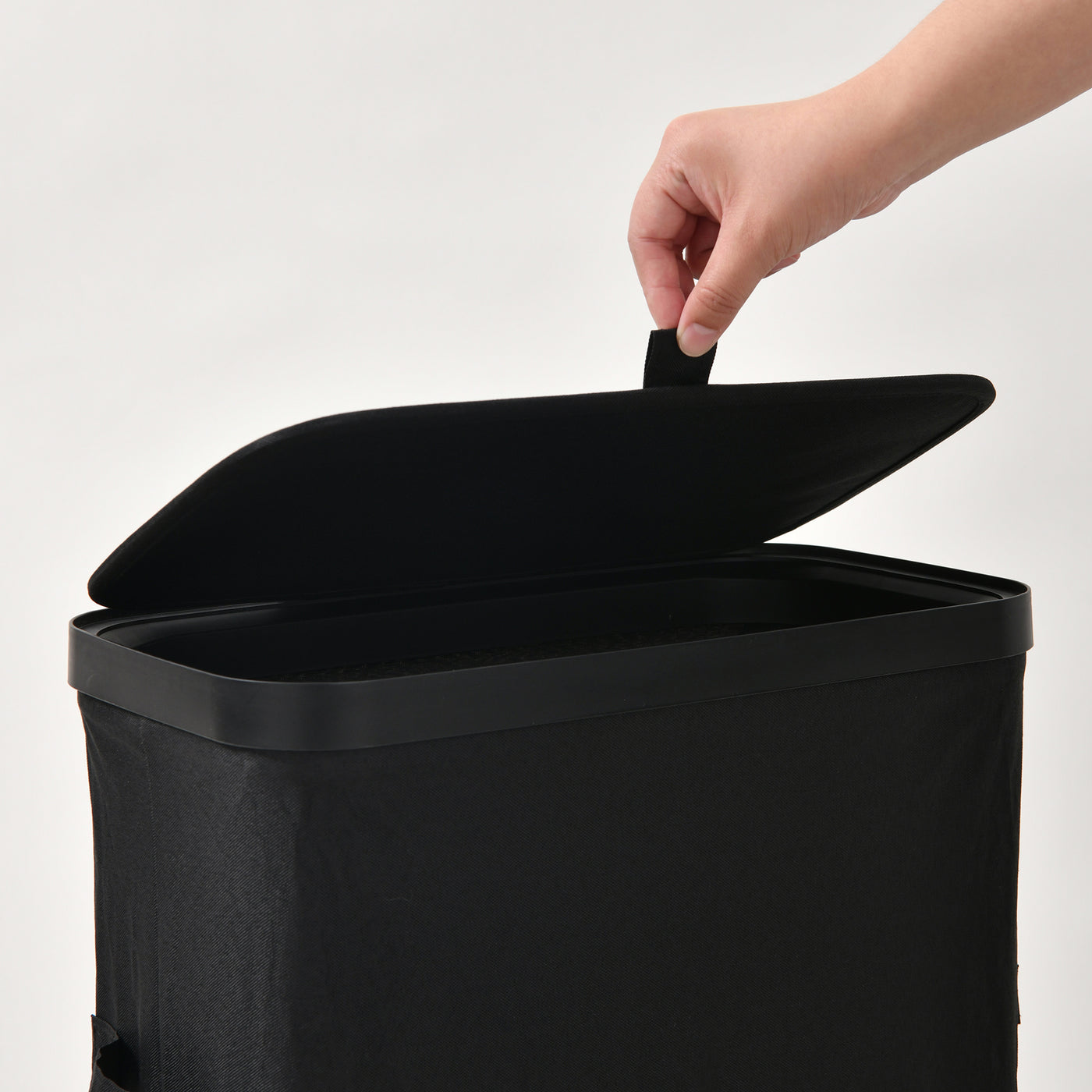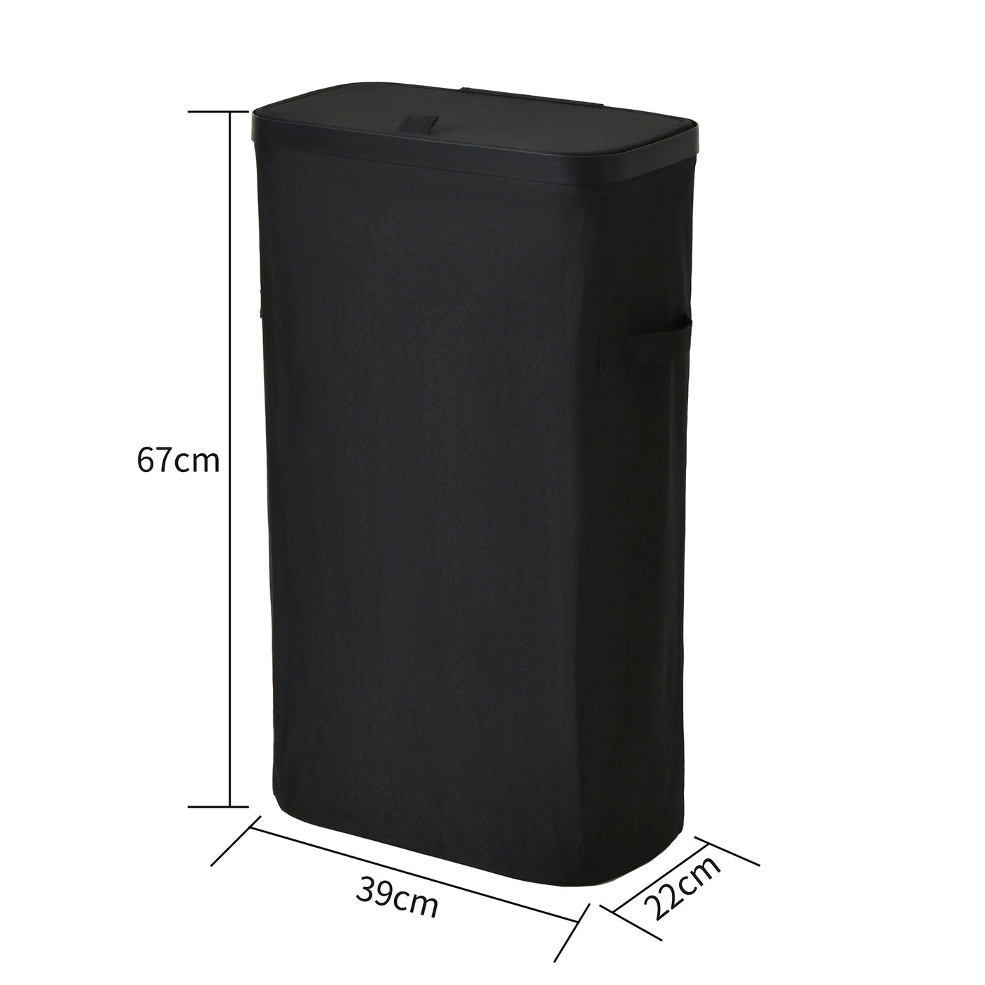 Voyager Slim Laundry Hamper 40L Faux Linen 22x39x67cm Black