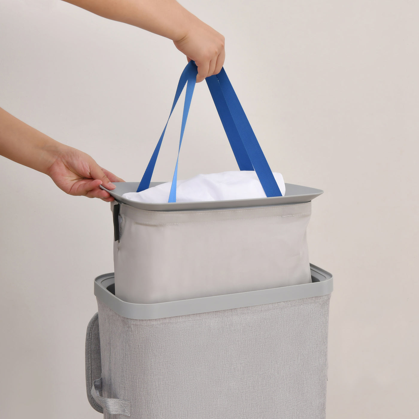 Voyager Slim Laundry Hamper 40L Faux Linen 22x39x67cm Grey