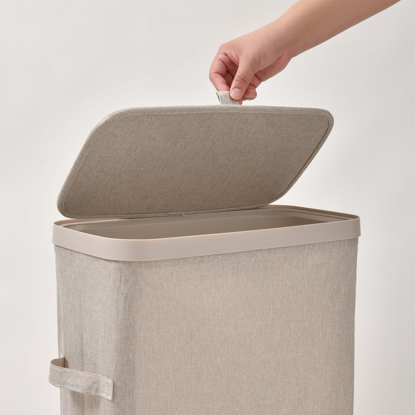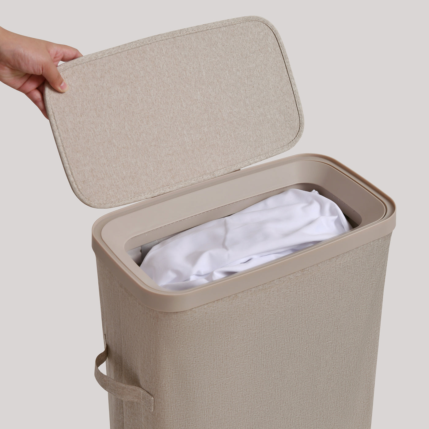 Voyager Slim Laundry Hamper 40L Faux Linen 22x39x67cm Natural