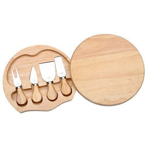 4 Pcs Cheese Knife Set With Wooden Case / Cutting Board - Natural Brown