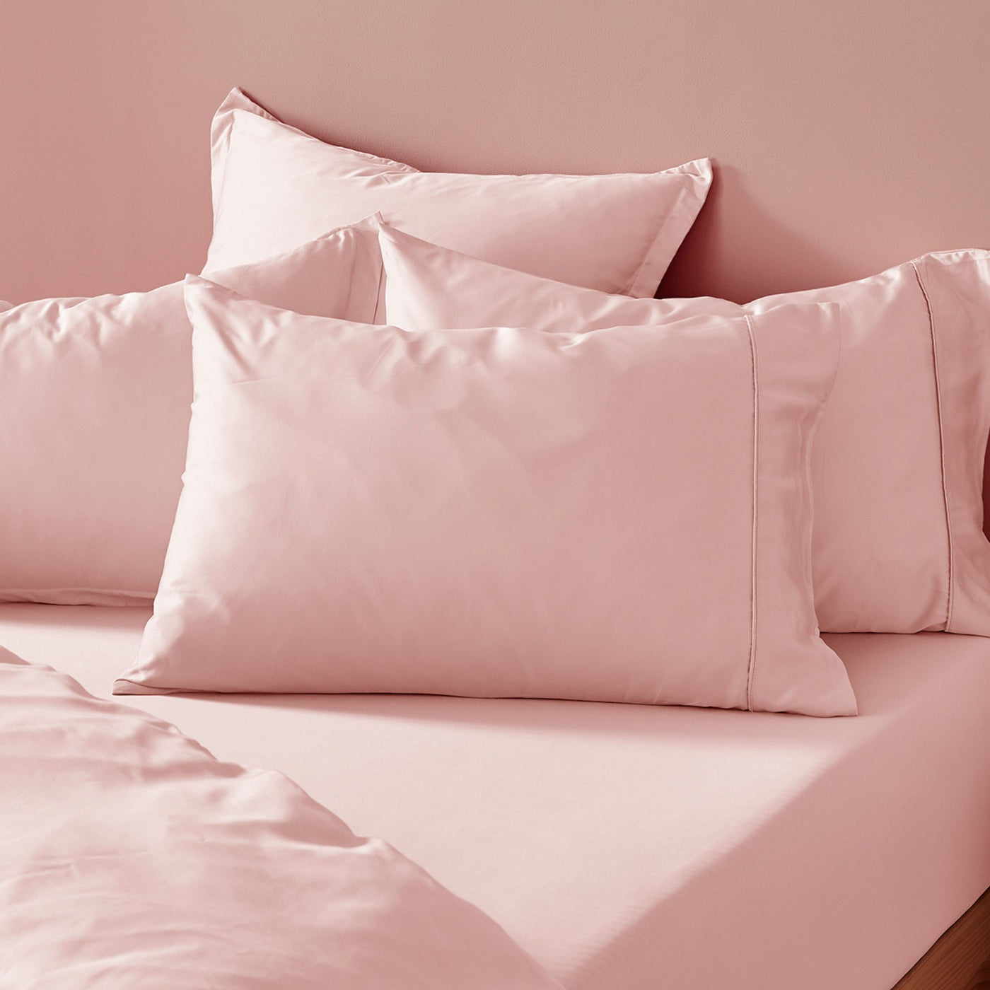 Indulge in naturally luxurious sleep with our Bamboo Viscose Sateen Pillowcase Twin Pack. Made from 100% bamboo viscose with a silky-smooth sateen weave, these pillowcases offer breathable, year-round comfort with a gentle sheen and elegant drape. Naturally thermoregulating and hypoallergenic, they're perfect for sensitive skin and sustainable lifestyles.Features• 100% bamboo viscose• Sateen weave for silky softness and elegant sheen• Cuffed detailing• Naturally breathable and thermoregulating• Hypoallergenic and antimicrobial• OEKO-TEX certified - free from harmful substances• Machine washable• Includes self-fabric bag for easy storageSizeStandard Pillowcase - Pair - 48 x 73cmKing Pillowcase - Pair - 50 x 90cmMaterial100% bamboo viscose - 400 thread countCare InstructionsCold machine wash separately before use. Do not bleach or tumble dry. Line dry in shade. Cool iron on reverse if needed. Do not dry clean.Made in China.