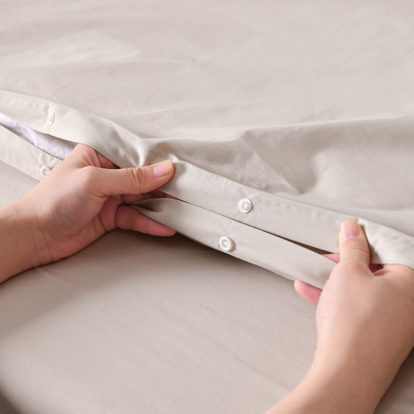 Sleep crisp and cool with our 300 thread count cotton percale quilt cover set - crafted for year-round comfort with a breathable matte finish and soft hand feel that only improves with time.