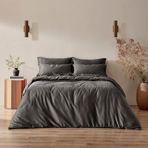 Add a touch of luxury to your bedroom with the Serene Bamboo Cotton Quilt Cover Set. Expertly woven from a luxurious blend of 60% bamboo viscose and 40% cotton, featuring a sateen finish with a lustrous sheen and exquisitely smooth hand feel.Thoughtfully designed for both comfort and peace of mind, the bamboo cotton collection is OEKO-TEX® Standard 100 certified, ensuring it is free from harmful substances. The naturally breathable and moisture-wicking benefits of bamboo is paired with cotton for durability, making this quilt cover set perfect night after night.For a curated aesthetic, pair the Serene Quilt Cover Set with coordinating pieces from our Serene Bamboo Cotton Collection.Features• Premium 60% bamboo viscose and 40% cotton blend• Silken sateen weave for a soft, luminous finish• OEKO-TEX® certified – free from harmful substances• Breathable, hypoallergenic, and gentle on sensitive skin• Available in a sophisticated palette of colours and full size range• Machine washable for effortless careSizeSingle - Quilt Cover 140 x 210cm | 1 Pillowcase 48 x 73cmKing Single - Quilt Cover 160 x 210cm | 1 Pillowcase 48 x 73cmDouble - Quilt Cover 180 x 210cm | 2 Pillowcases 48 x 73cmQueen - Quilt Cover 210 x 210cm | 2 Pillowcases 48 x 73cmKing - Quilt Cover 245 x 210cm | 2 Pillowcases 48 x 73cmSuper King - Quilt Cover 270 x 240cm | 2 Pillowcases 48 x 73cmMaterial60% bamboo viscose, 40% cottonCare InstructionsWarm gentle machine wash separately before use. Do not bleach or tumble dry. Do not rub, soak or wring.Line dry in shade. Warm iron if required. Don't dry clean.Designed in Australia.Made in China.