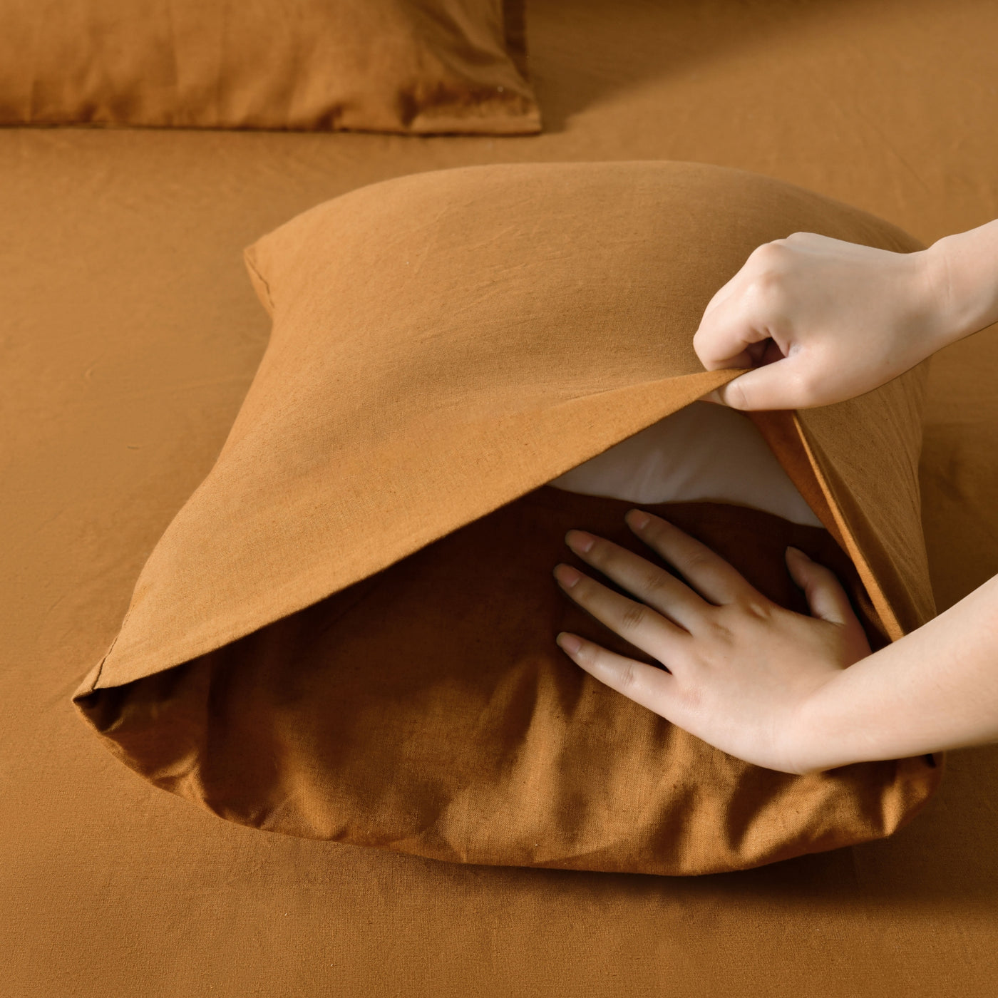 - Linen Cotton Quilt Cover Set Rust