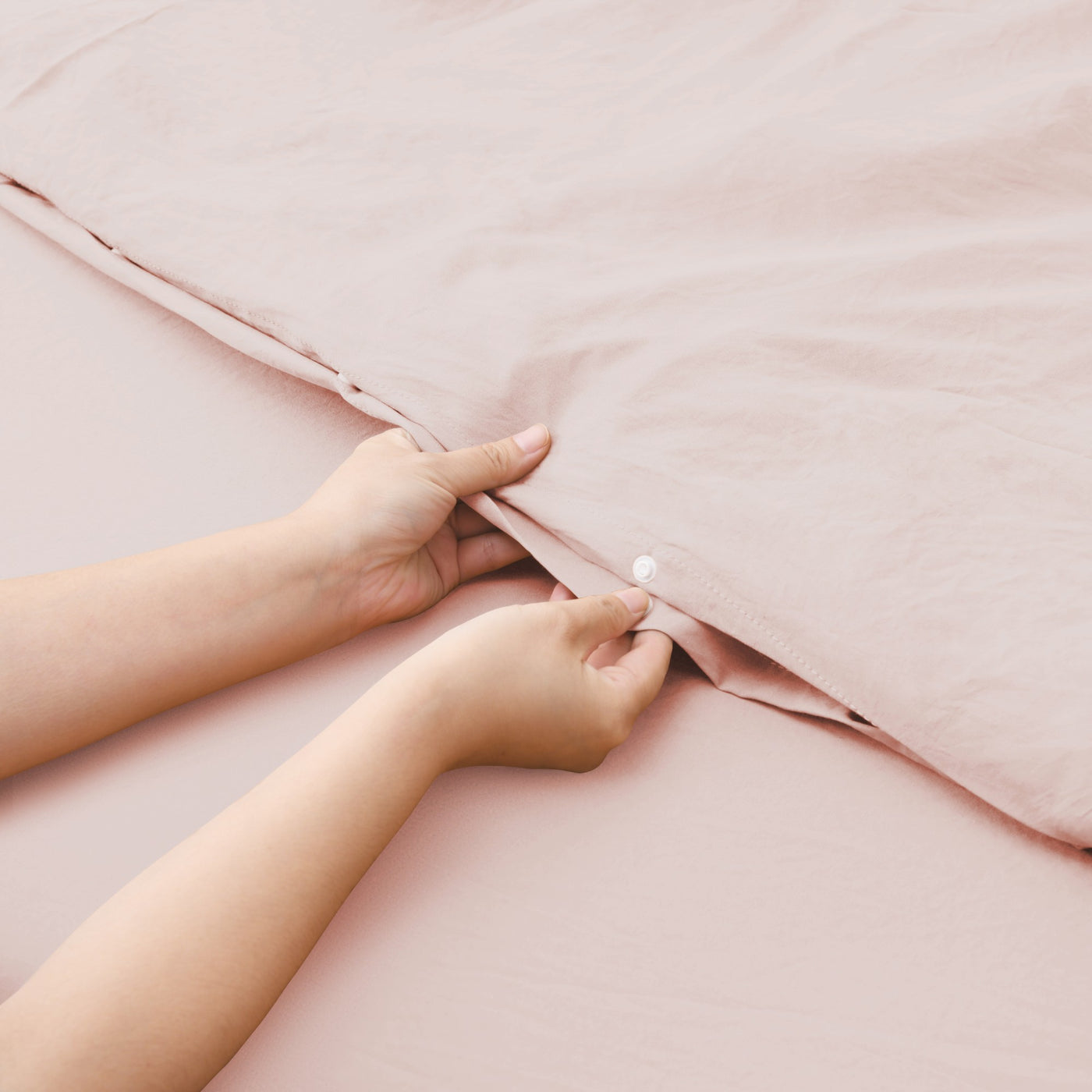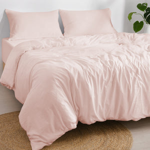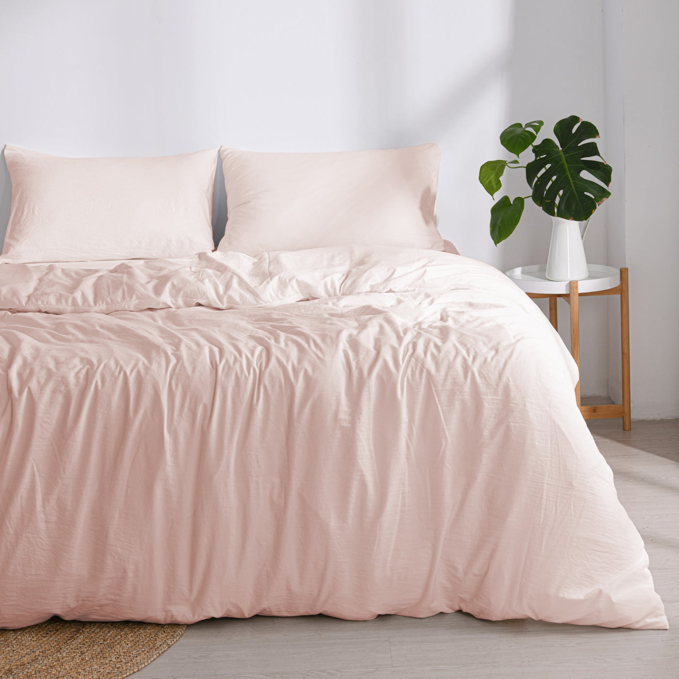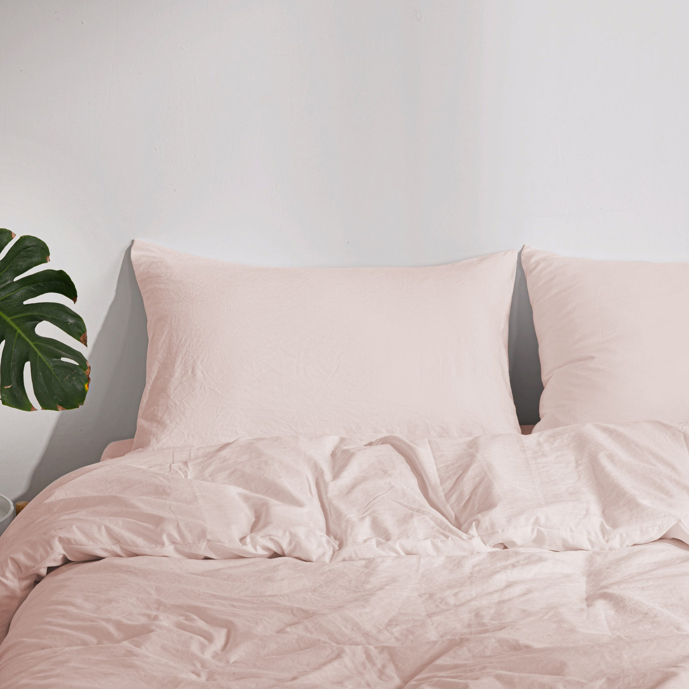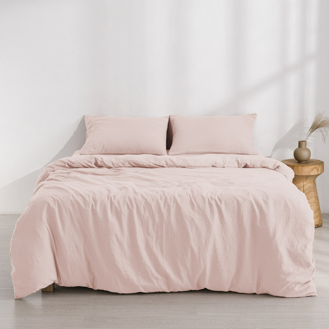 - Superfine Washed Microfibre Quilt Cover Set Blush Pink