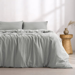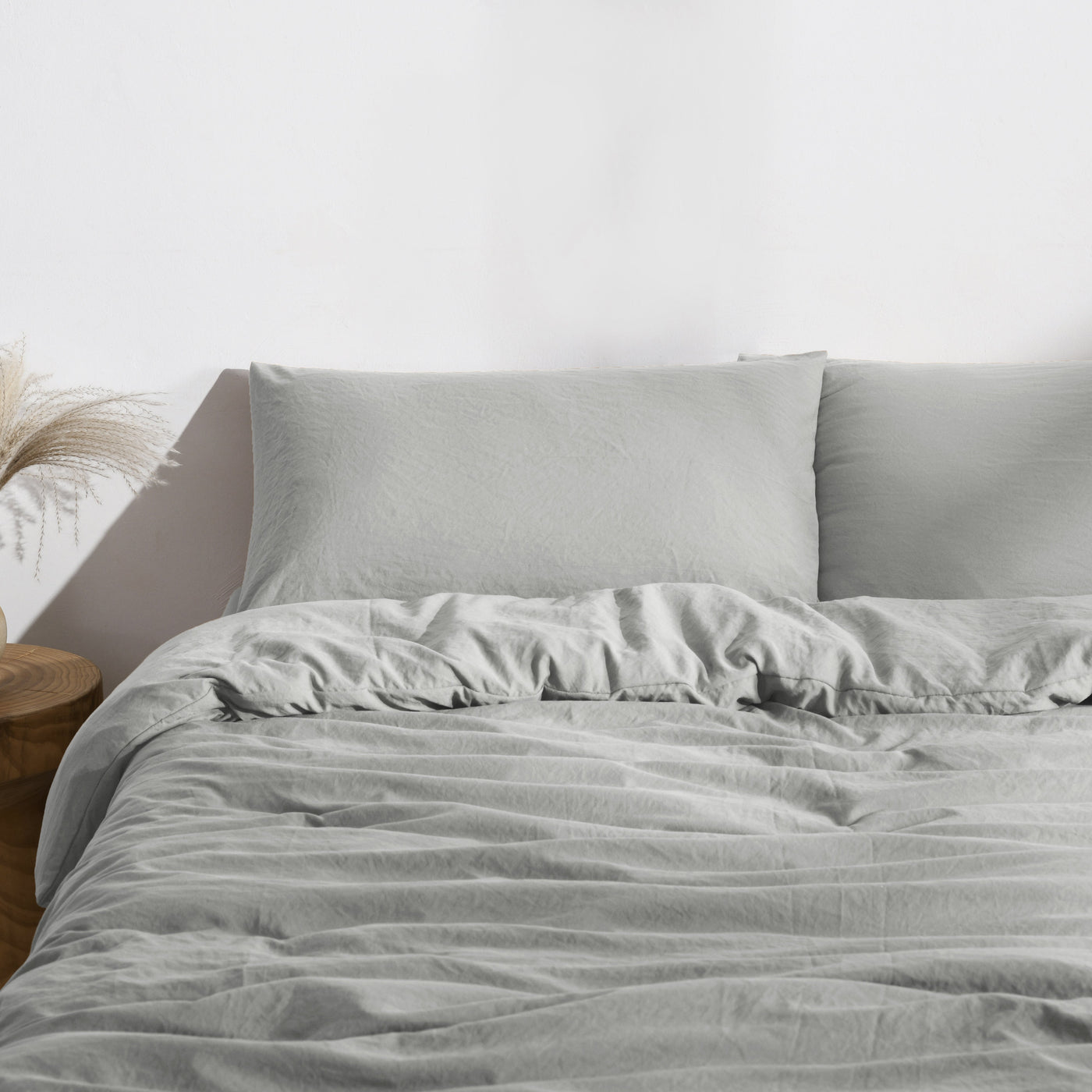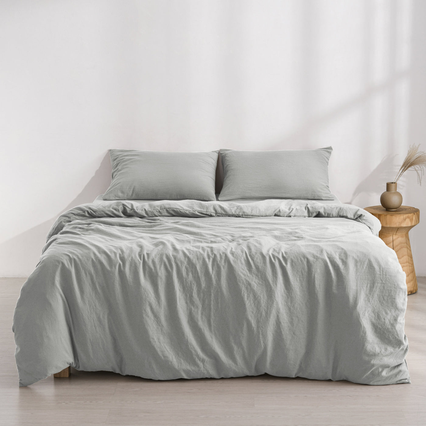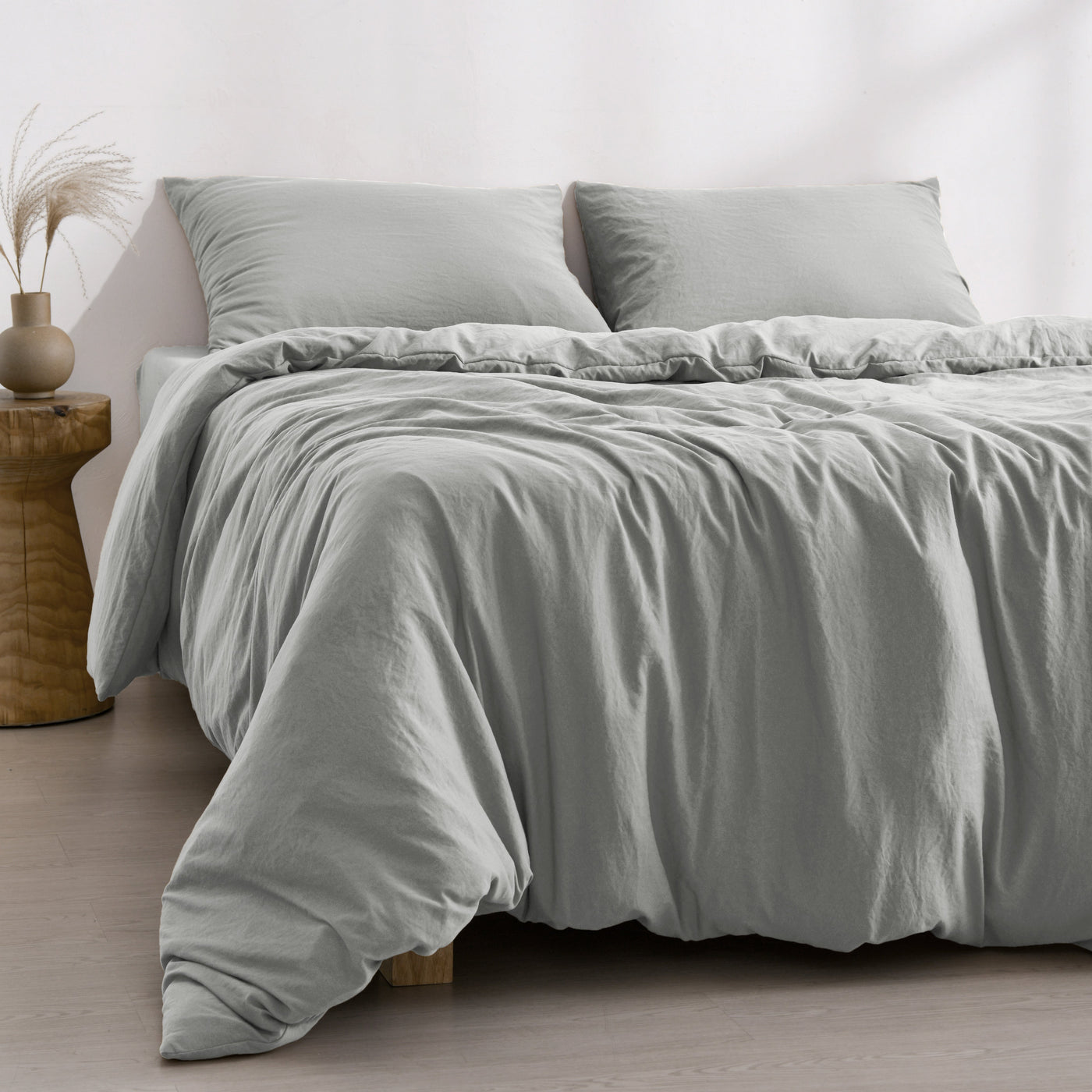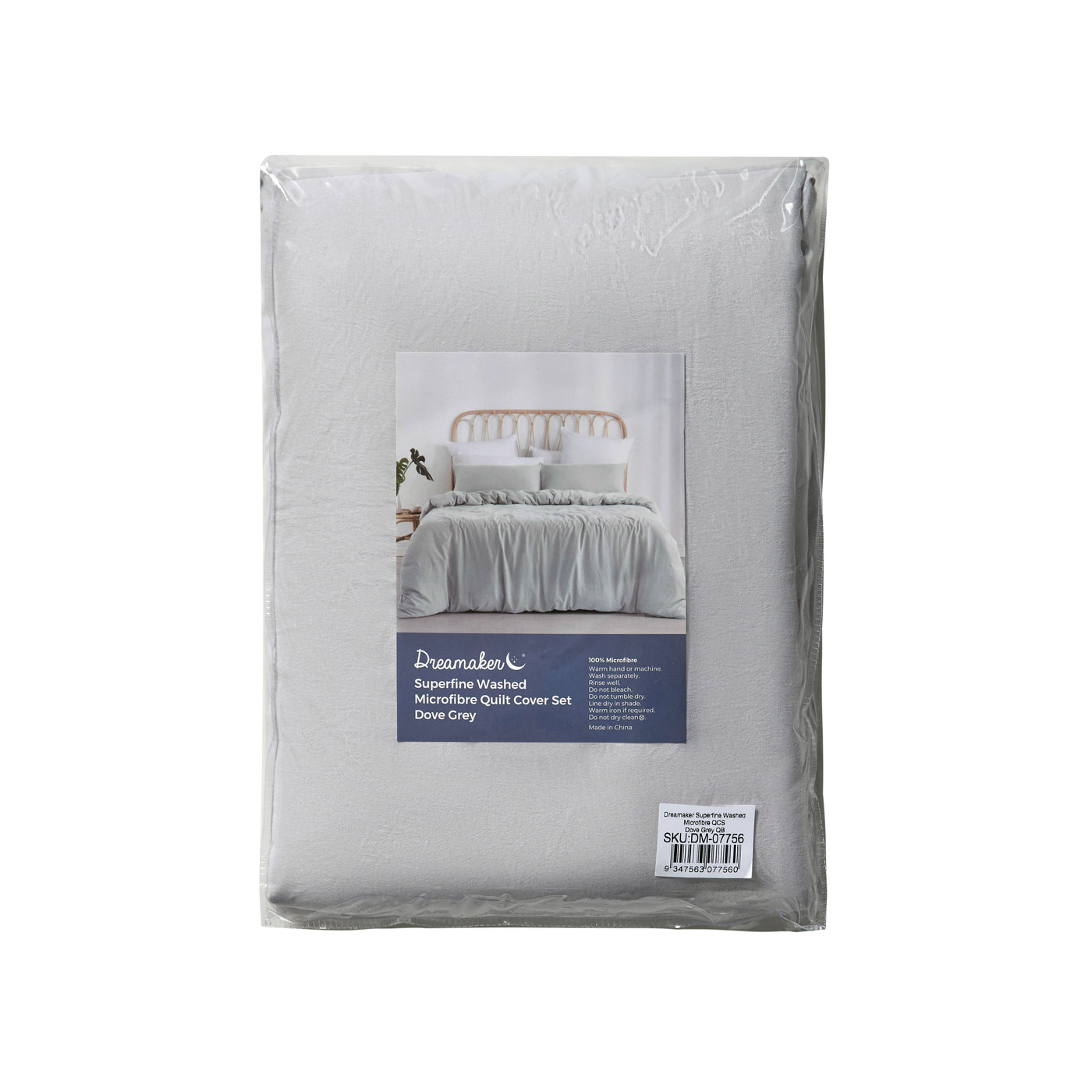 - Superfine Washed Microfibre Quilt Cover Set Dove Grey