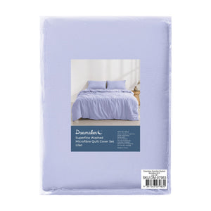 - Superfine Washed Microfibre Quilt Cover Set Lilac