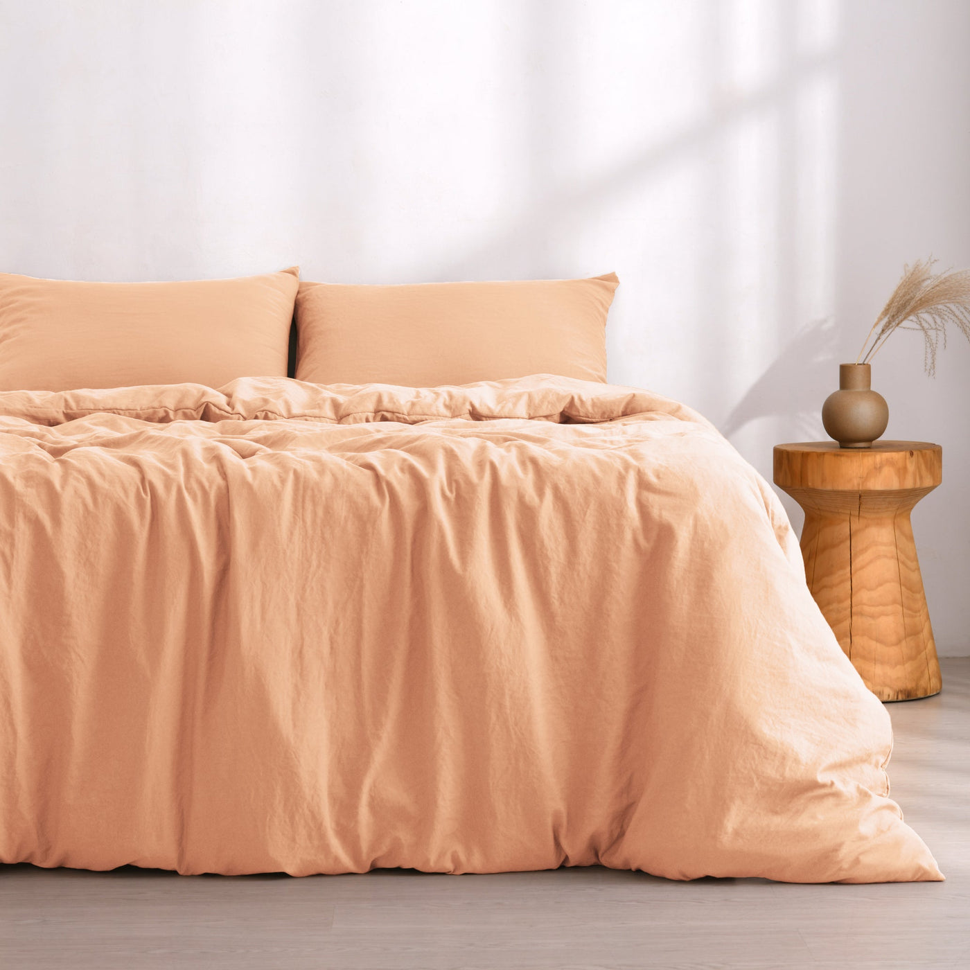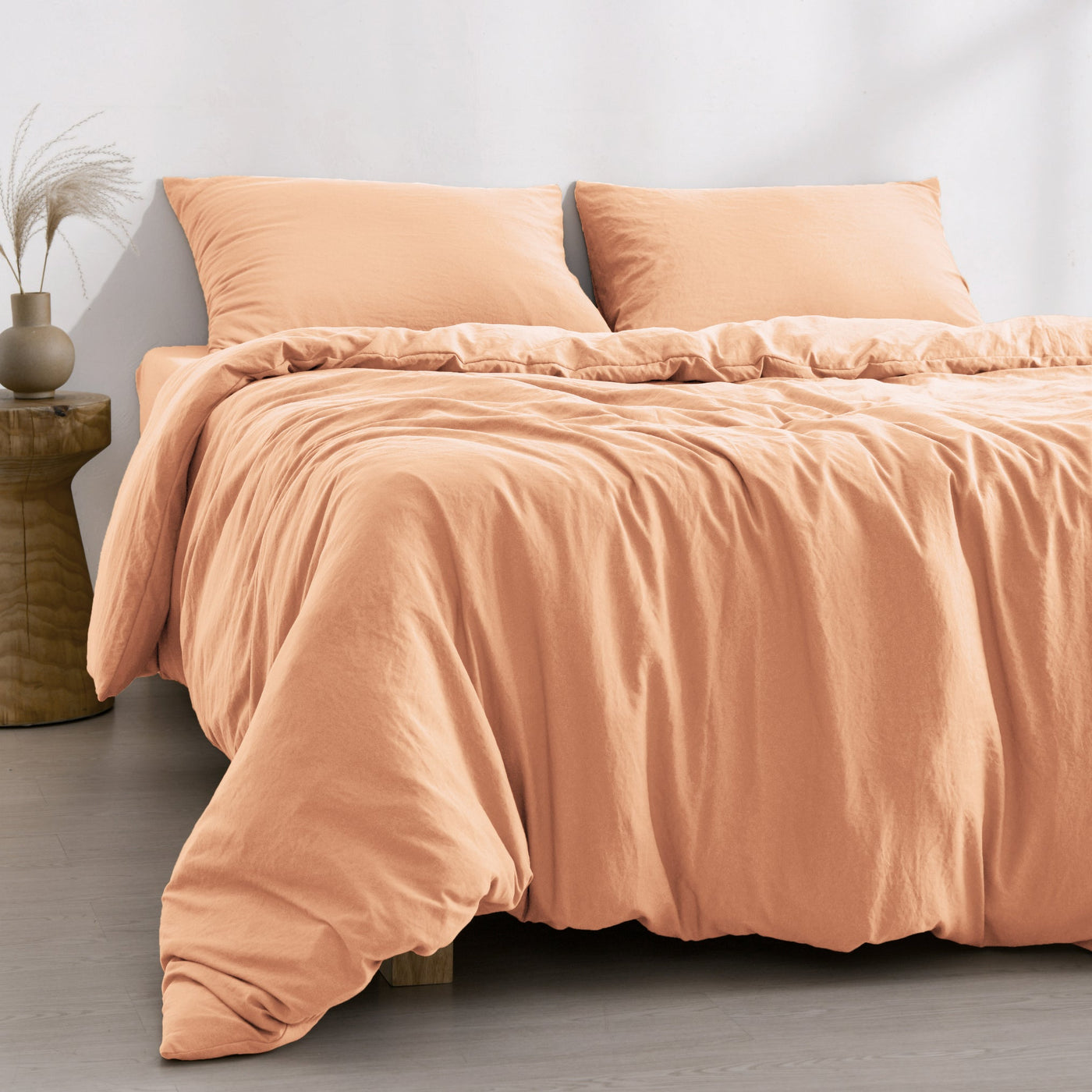 - Superfine Washed Microfibre Quilt Cover Set Peach