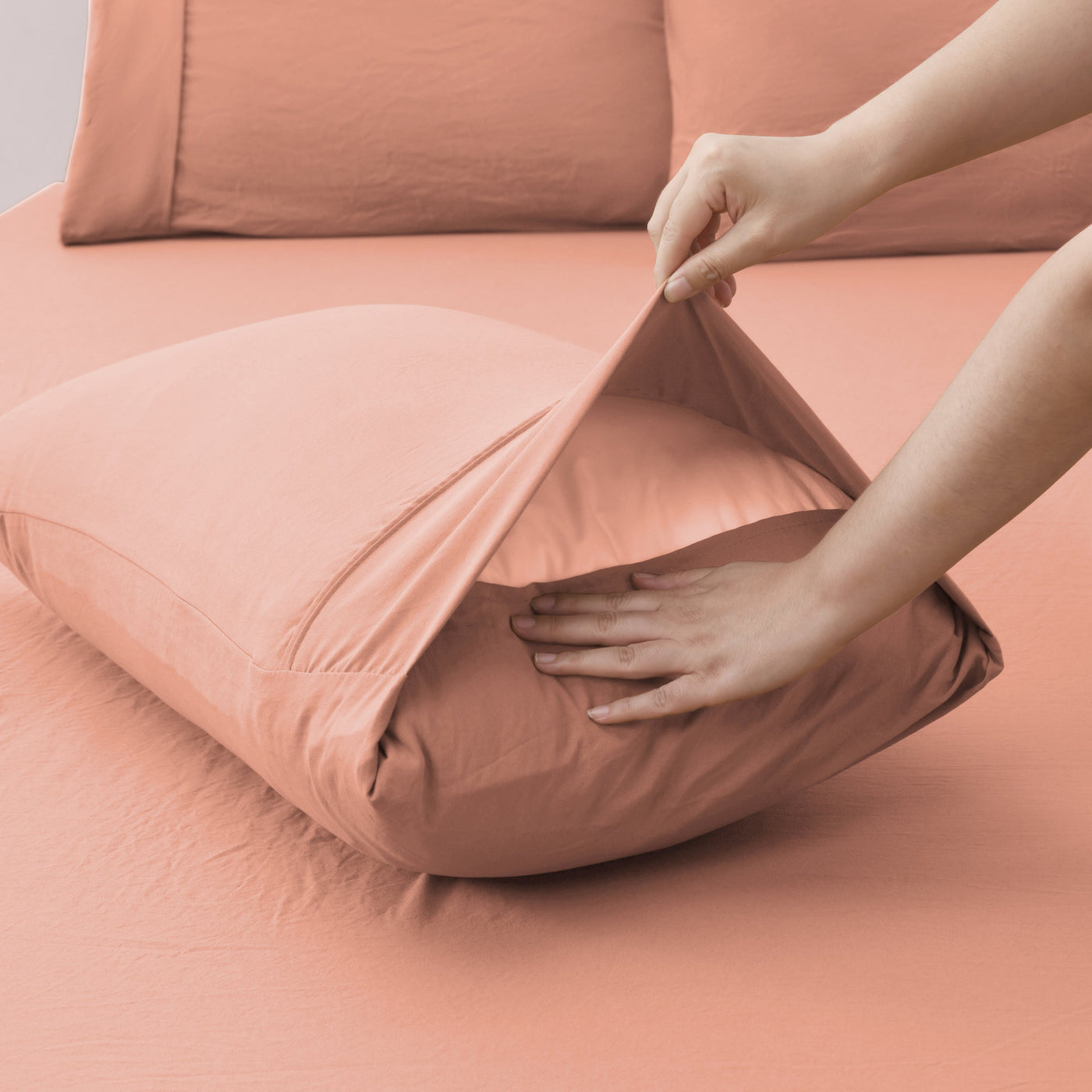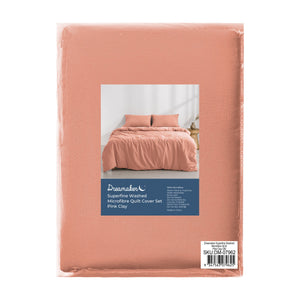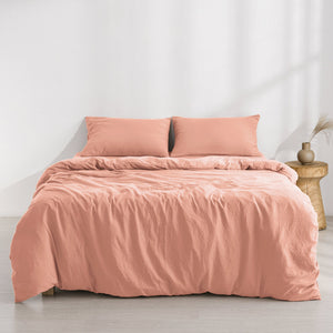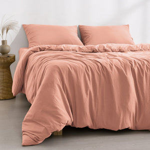 - Superfine Washed Microfibre Quilt Cover Set Pink Clay