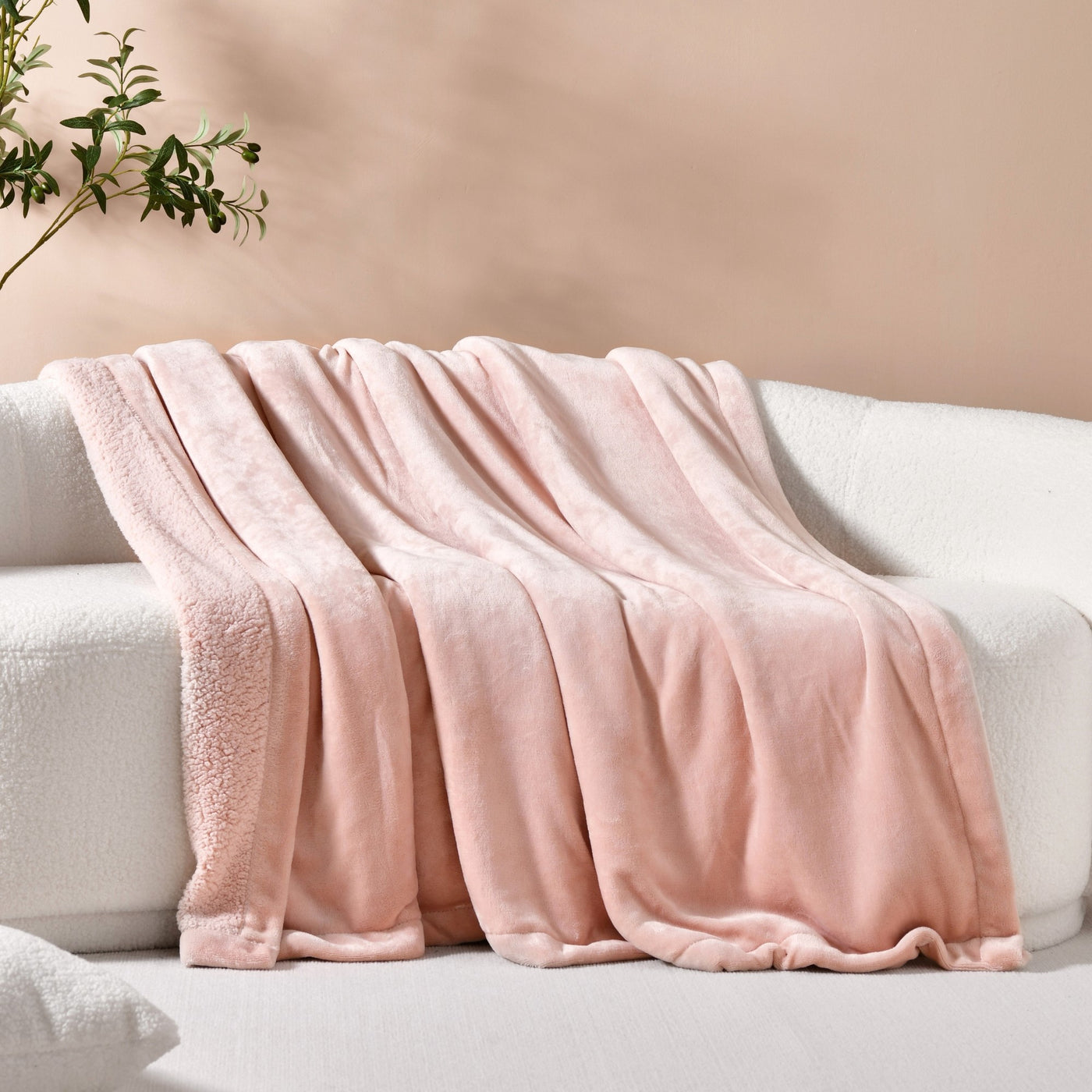 Serene Hudson Fleece and Sherpa Reverse Throw Blanket Blush