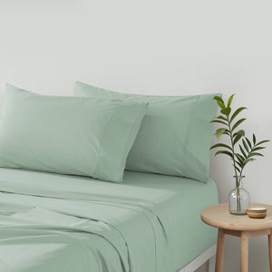 Enjoy crisp, breathable comfort every night with our 300TC cotton percale sheet set. Designed for a cool, smooth sleep experience, this lightweight weave gets softer with every wash.Features• 100% cotton percale in a crisp matte finish• 300 thread count - soft yet structured• Naturally cool and breathable• Machine-washable and easy-care finish• OEKO-TEX® certified - no harmful substances• Includes fitted sheet, flat sheet, and pillowcase(s)SizeSingle - Fitted Sheet 91 x 193 x 40cm | Flat Sheet 180 x 254cm | 1 Pillowcase 48 x 73cmKing Single - Fitted Sheet 107 x 203 x 40cm | Flat Sheet 200 x 274cm | 1 Pillowcase 48 x 73cmDouble - Fitted Sheet 137 x 193 x 40cm | Flat Sheet 228 x 254cm | 2 Pillowcases 48 x 73cmQueen - Fitted Sheet 152 x 203 x 50cm | Flat Sheet 245 x 274cm | 2 Pillowcases 48 x 73cmKing - Fitted Sheet 183 x 203 x 50cm | Flat Sheet 260 x 274cm | 2 Pillowcases 48 x 73cmSuper King - Fitted Sheet 203 x 203 x 50cm | Flat Sheet 280 x 274cm | 2 Pillowcases 48 x 73cmMaterials300 thread count cotton percaleCare InstructionsCold machine wash separately before use. Do not bleach or soak. Line dry or tumble dry low. Warm iron if needed. Do not dry clean.Made in China.