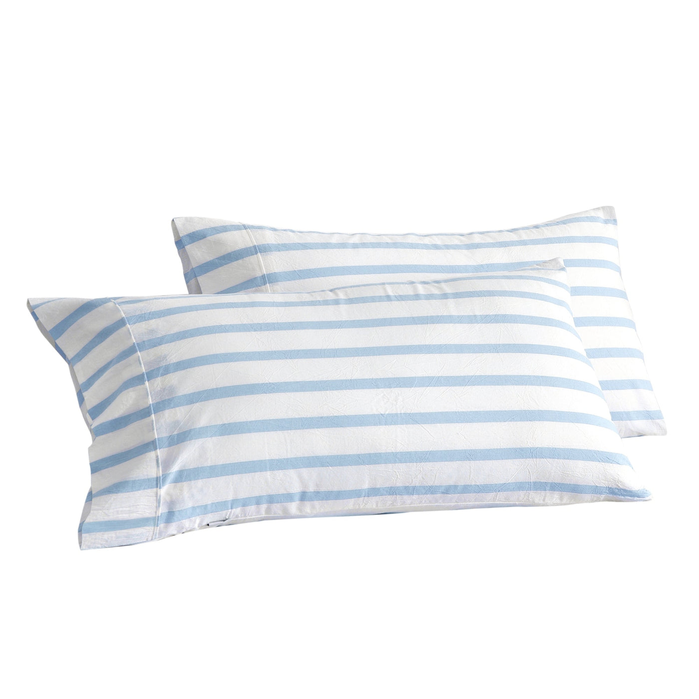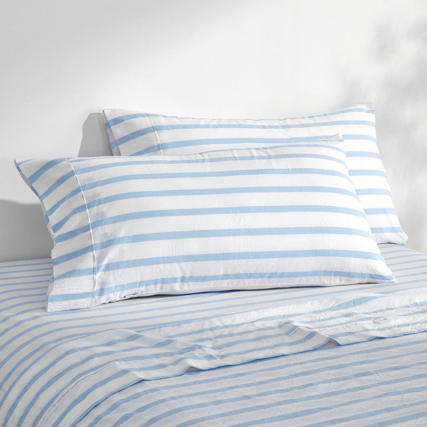 Relax in the sunny softness of the Dreamaker Bask Striped Washed Cotton King Pillowcases in a twin pack. Made from pre-washed yarn-dyed cotton, our striped pattern is woven to lock in rich colour and detail, while the washed finish creates a lived-in, relaxed feel with a soft matte texture that only gets better with time.Features• Yarn-dyed cotton for long lasting colour• Woven striped pattern• Ultra-soft, breathable washed cotton• Machine washable• Includes cloth bag for easy storage• OEKO-TEX certified - free from harmful substances• Mix and match our Washed Cotton bedding setsSizeKing Pillowcase - Twin Pack - 50 x 90cmMaterials100% washed cotton, yarn dyed.Care InstructionsCold gentle machine wash separately before use. Wash with similar colours. Do not bleach or soak. Line dry in shade. Warm iron on reverse if required. Do not dry clean.Designed in Australia.Made in China.