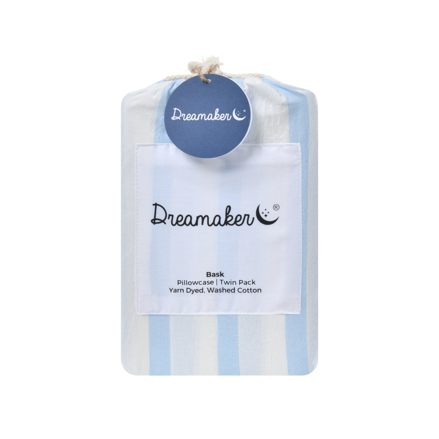 Relax in the sunny softness of the Dreamaker Bask Striped Washed Cotton Standard Pillowcases in a twin pack. Made from pre-washed yarn-dyed cotton, our striped pattern is woven to lock in rich colour and detail, while the washed finish creates a lived-in, relaxed feel with a soft matte texture that only gets better with time.Features• Yarn-dyed cotton for long lasting colour• Woven striped pattern• Ultra-soft, breathable washed cotton• Machine washable• Includes cloth bag for easy storage• OEKO-TEX certified - free from harmful substances• Mix and match our Washed Cotton bedding setsSizeStandard Pillowcase - Twin Pack - 48 x 73cmMaterials100% washed cotton, yarn dyed.Care InstructionsCold gentle machine wash separately before use. Wash with similar colours. Do not bleach or soak. Line dry in shade. Warm iron on reverse if required. Do not dry clean.Designed in Australia.Made in China.