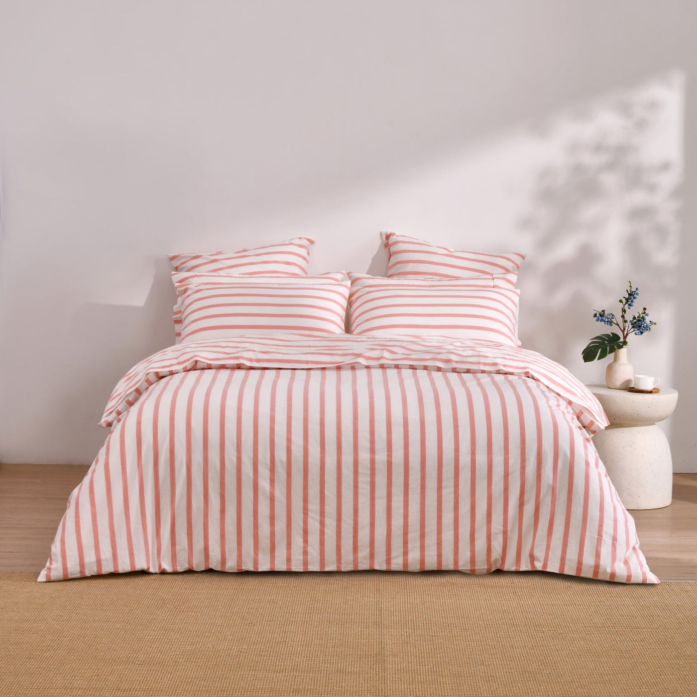 Bask Washed Cotton Yarn Dyed Stripe Quilt Cover Set Coral
