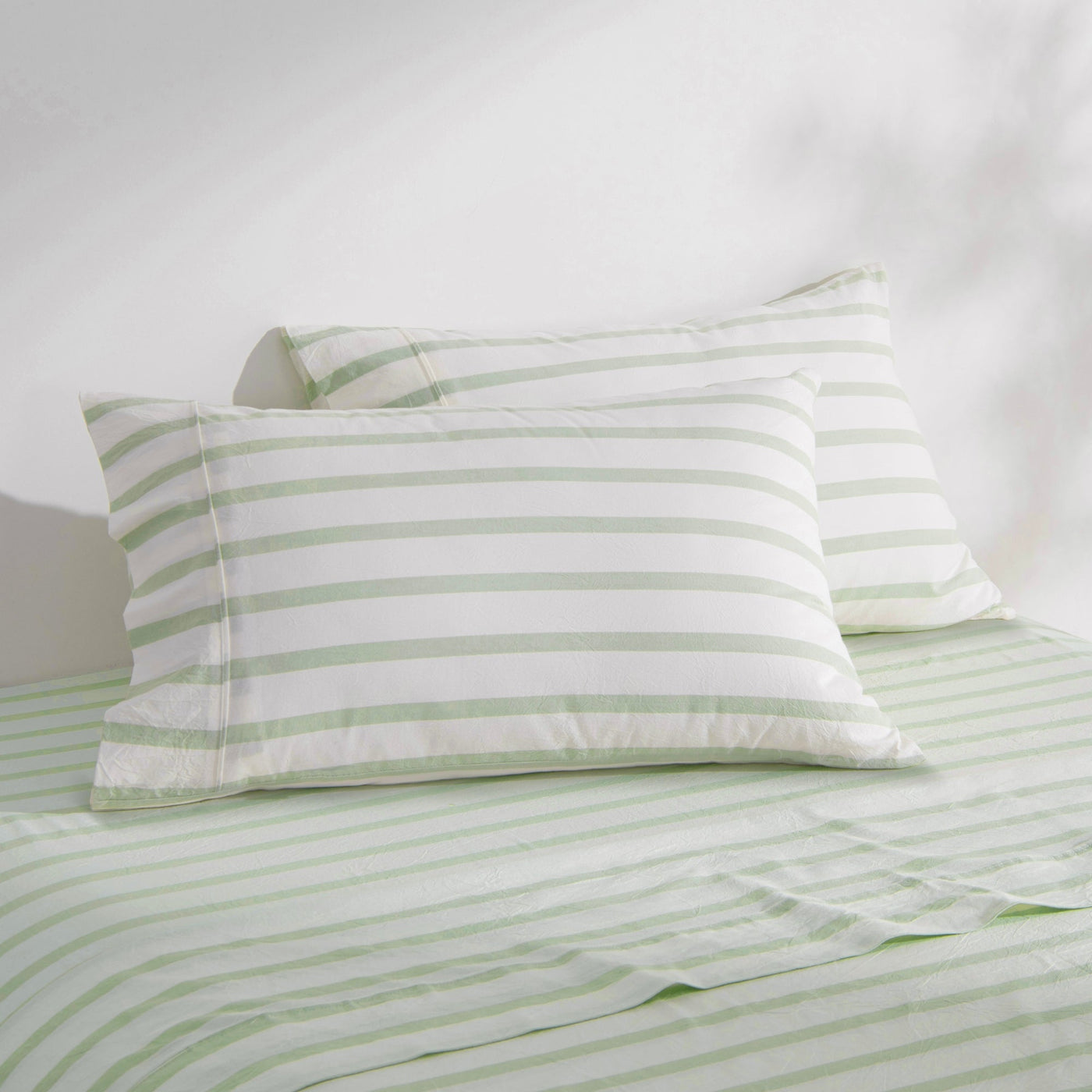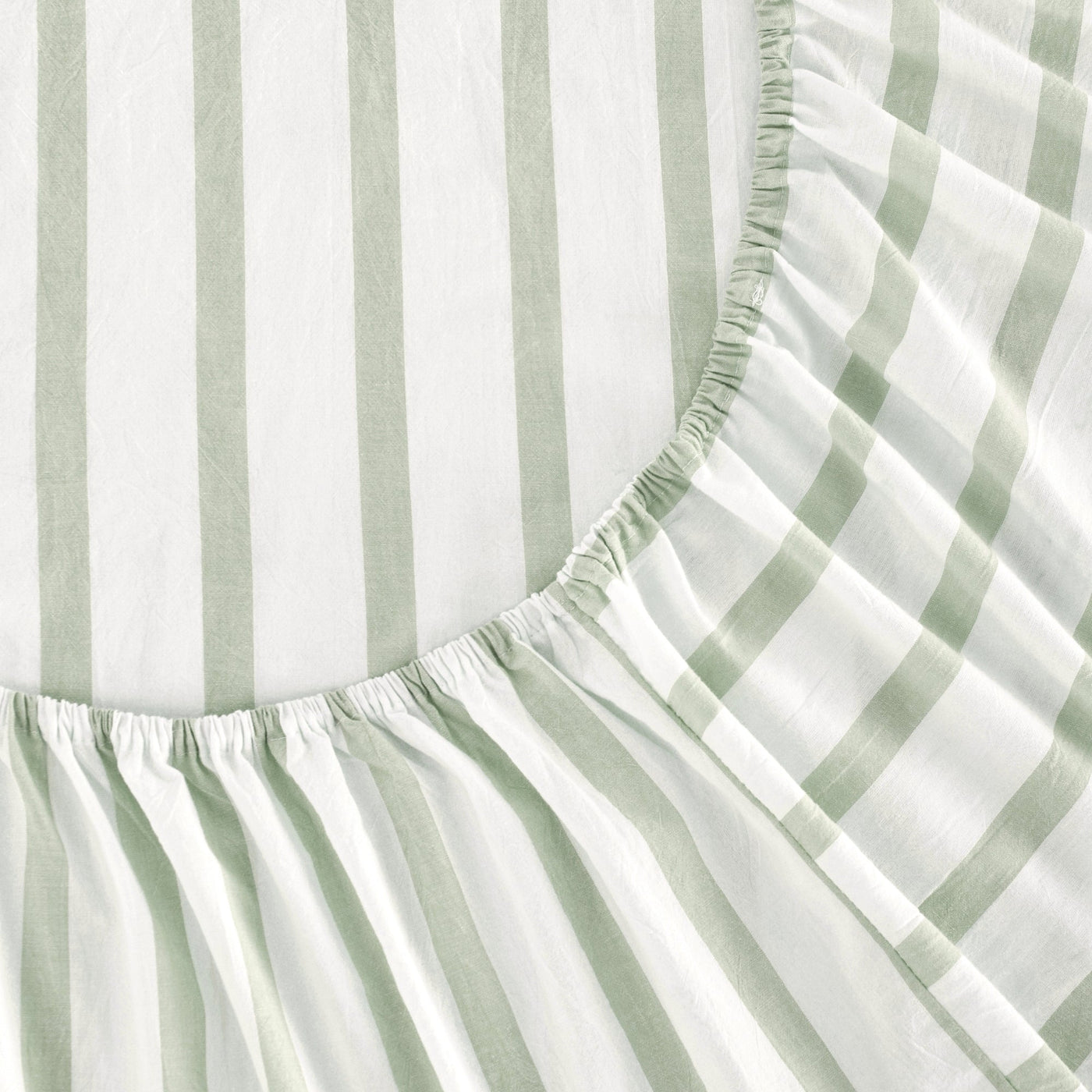 Bask Washed Cotton Yarn Dyed Stripe Sheet Set Sage