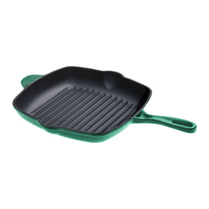 This cast iron square grill pan is made from a combination of raw cast iron and long-lasting enamel. Traditional cast iron looks great and retains heat extremely well. Enamel offers great protection without altering flavours. This high-quality pan is made with a strong handle, a helper grip on the opposite side, and twin pouring lips for oils, fats, and juices. The Gourmet Kitchen Cast Iron Grill Pan is also available in two stylish colours: vibrant Black Cherry Red and sophisticated Eden Green.