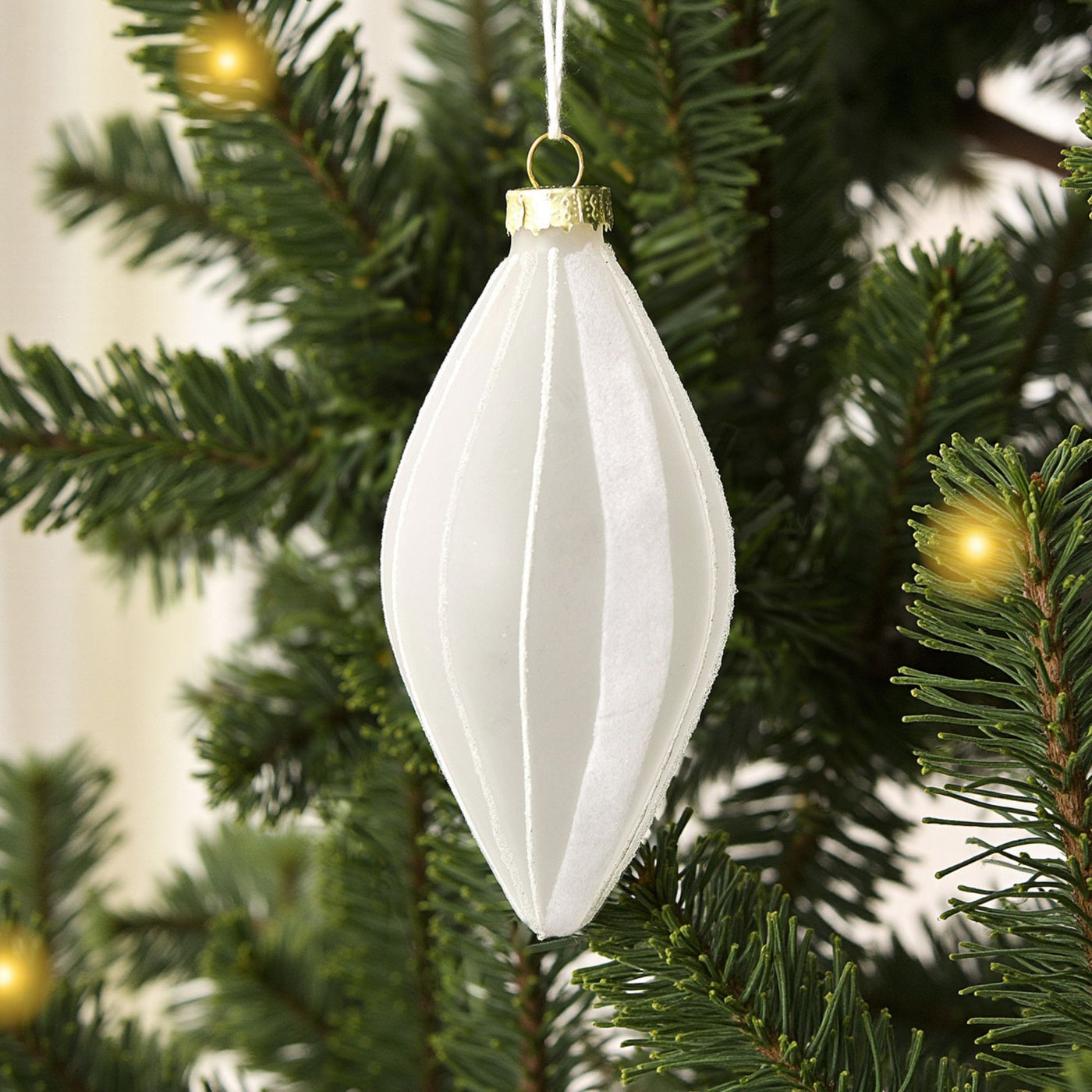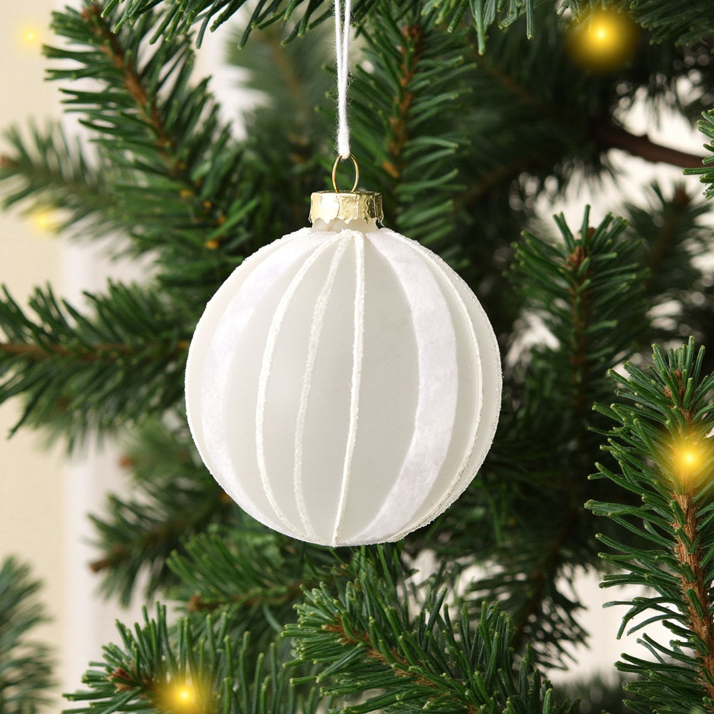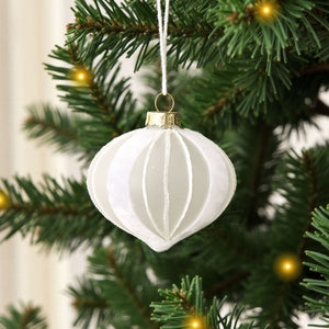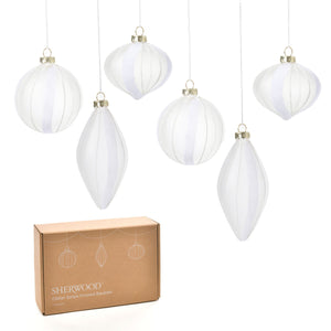 Christmas Glitter Stripe Frosted Glass Mixed Shape Baubles (6 Pack) White