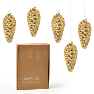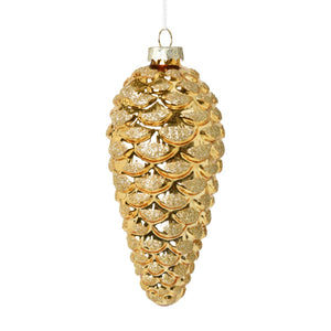 Christmas Pinecone Metallic Glass Baubles (6 Pack) 7x16cm Gold