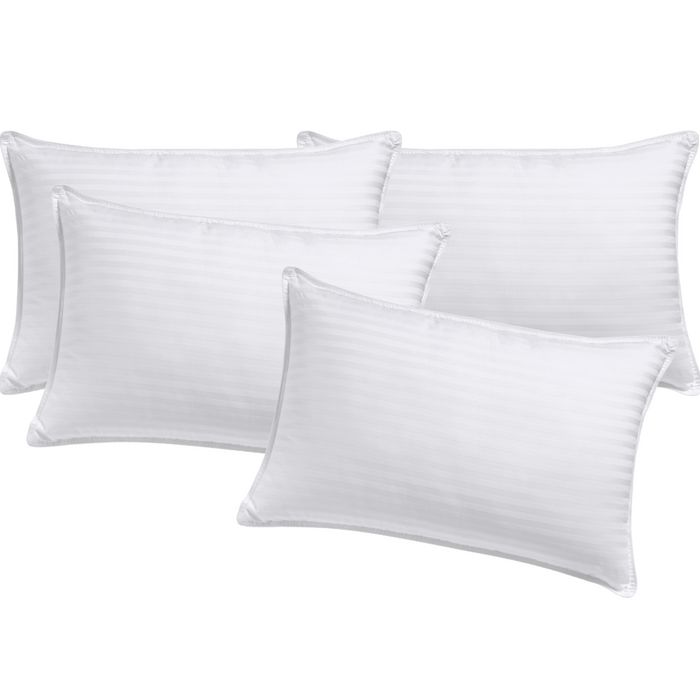 The Dreamaker Rolled Microfibre Pillow 4 pack is the standard that sets the bar when it comes to comfortable sleep. Its softness is designed to support your body to increase comfort to suit your lifestyle.This set of pillows is filled with luxury microfiber and covered with cotton in a stylish jacquard design and finished with double-stitched piping. The cotton cover is hypo-allergenic and impenetrable to dust mites, which promotes good sleep hygiene, while the microfibre gives your pillow the structure to support your neck comfortably throughout the night.Machine washable for easy care.Features: