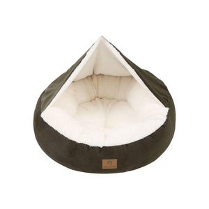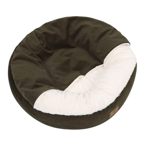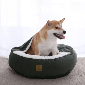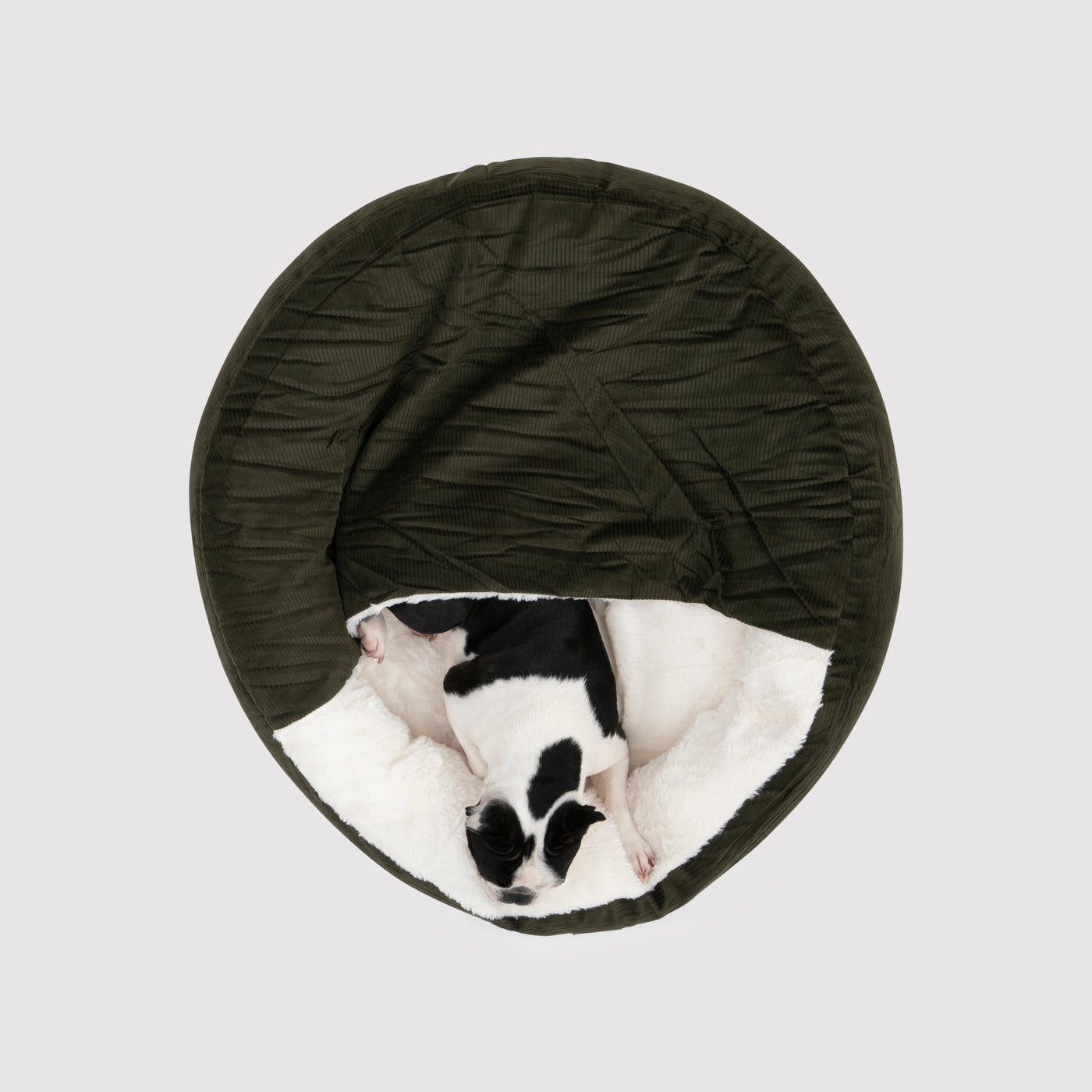 With the cushioned corduroy hooded nest, your dog can get a comfortable nap or sleep anytime in the comfort of your home or on your next travel destination.