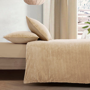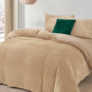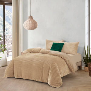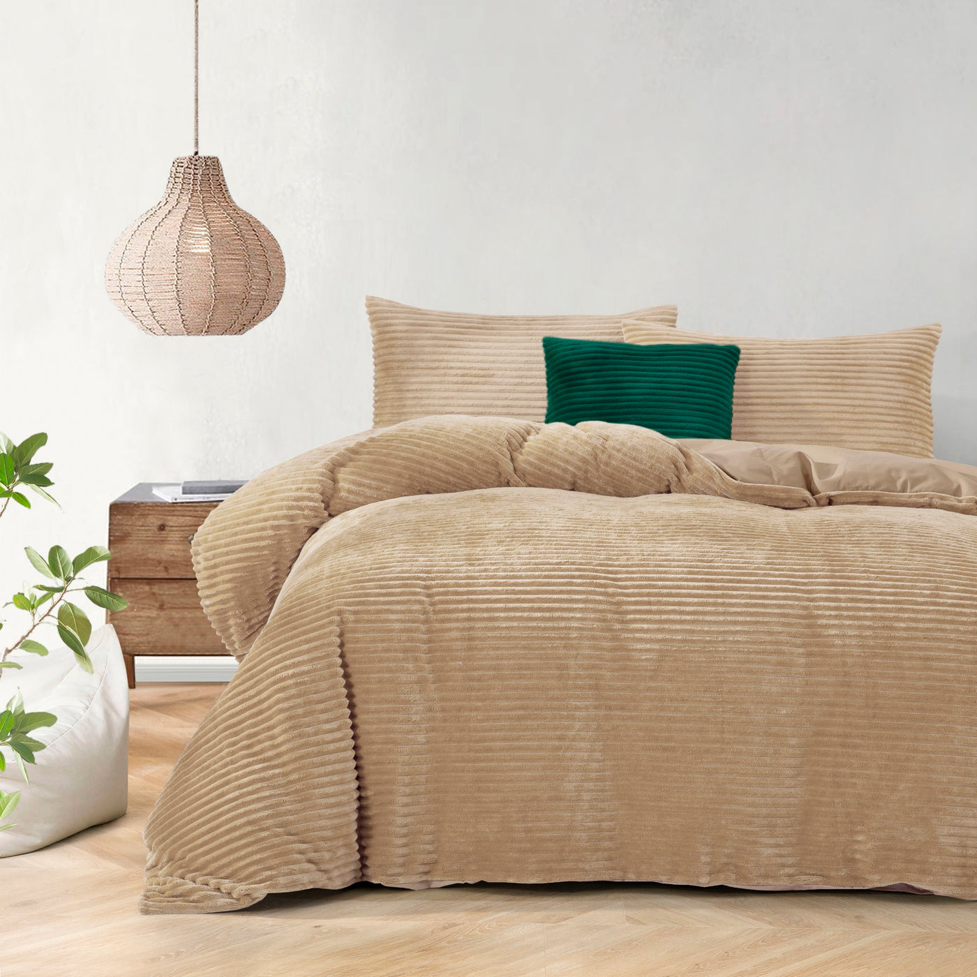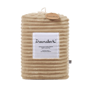 Crafted from luxuriously soft fabric, the Dreamaker Embossed Teddy Fleece Quilt Cover Set is perfect for cosying up on winter nights. Designed with sophistication in mind, the Teddy Quilt Cover Set boasts an embossed channel pattern that lends an air of elegance to your bedroom. With a silky-soft velveteen fabric on one side and a plain reverse, this sumptuous yet fluffy duvet cover set has the ideal winter weight and warmth, while the beautiful jewel tones bring a dramatic ambience to your space.Each set comes complete with a quilt cover and pillowcase(s) and looks great when styled together with the separate Embossed Teddy Fleece cushion.