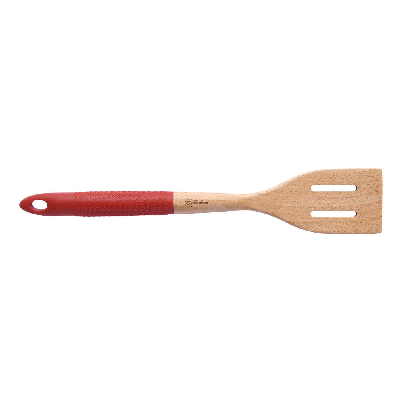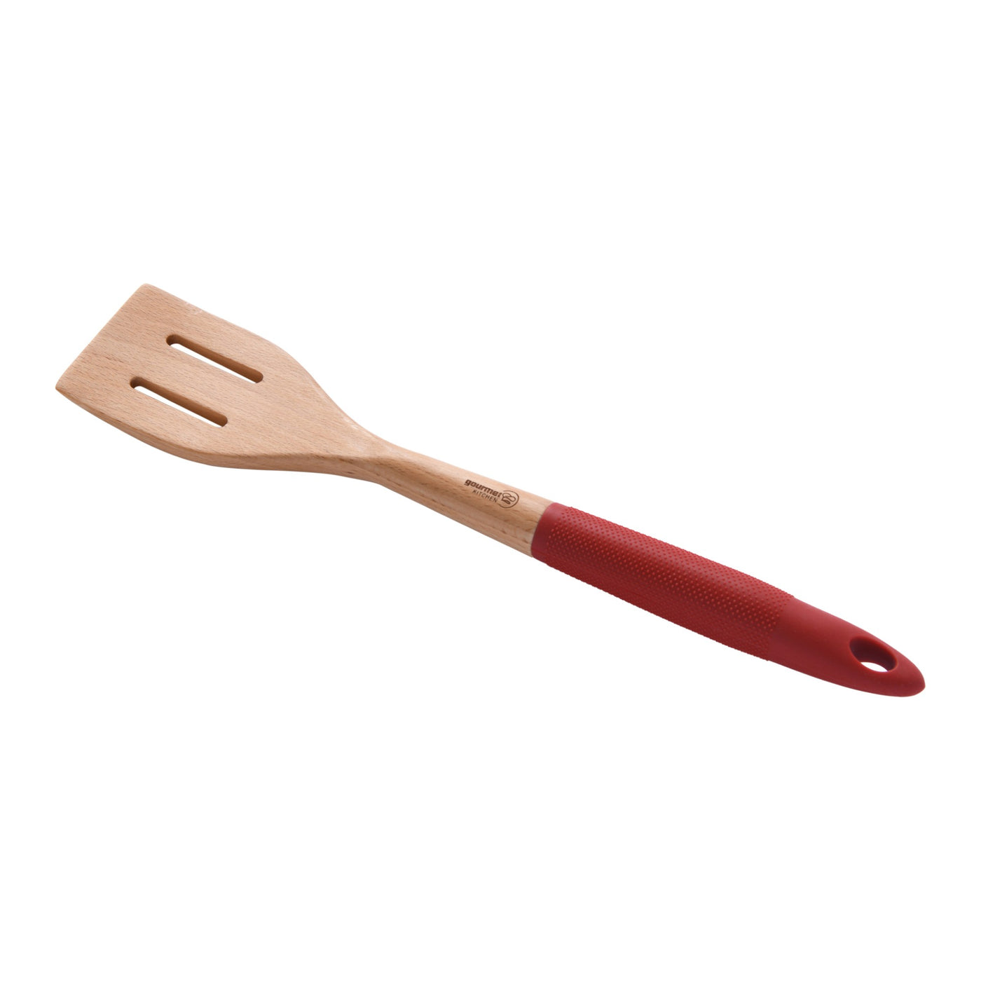 Elevate your cooking experience with the Gourmet Kitchen Rustic Beech Wooden Slotted Spatula with Silicone Grip in a captivating red hue. Crafted with precision and care, this culinary essential seamlessly blends style and functionality. The soft silicone handle ensures an easy and comfortable grip, making every culinary task a breeze.