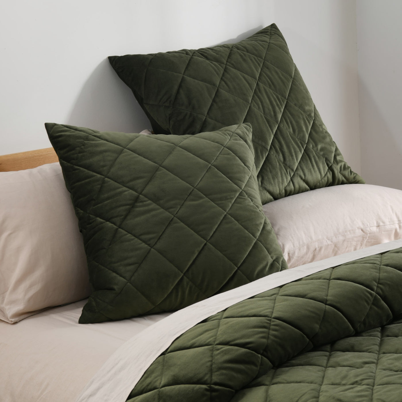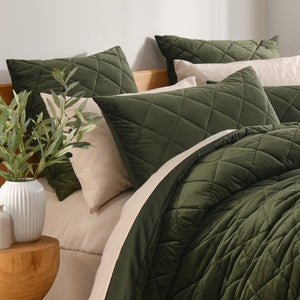 Winter bedding designed to feel as luxurious as it looks - plush, inviting, and beautifully detailed. The Haven Velvet European Pillowcase features a sumptuous 240gsm French velvet front in rich tones with elegant diamond quilting to add depth and texture, creating a layered, high-end look with a beautiful interplay of colour.Designed with a layer of soft filling for added warmth and finished with a practical polycotton reverse, it delivers indulgent comfort with easy-care practicality for everyday styling.Features• Luxurious French velvet in rich autumnal hues• Diamond quilting for elegant texture and depth• Lightly filled for added warmth and structure• Soft-touch finish with premium hand feel• Durable stitching to maintain loft and shape• Machine washable for easy careSizeEuropean Pillowcase - Individual - 65 x 65cmMaterialFront: 240gsm polyester french velvetFront Fill: 120gsm polyester fill with 65gsm microfibre backingReverse: 50% cotton, 50% polyesterCare InstructionsWash separately before first use. Gentle machine wash separately, 30°C max. Do not bleach. Avoid detergents that contain optical brighteners. Line dry in shade. Tumble dry low. Do not dry clean.Designed in Australia.Made in China.