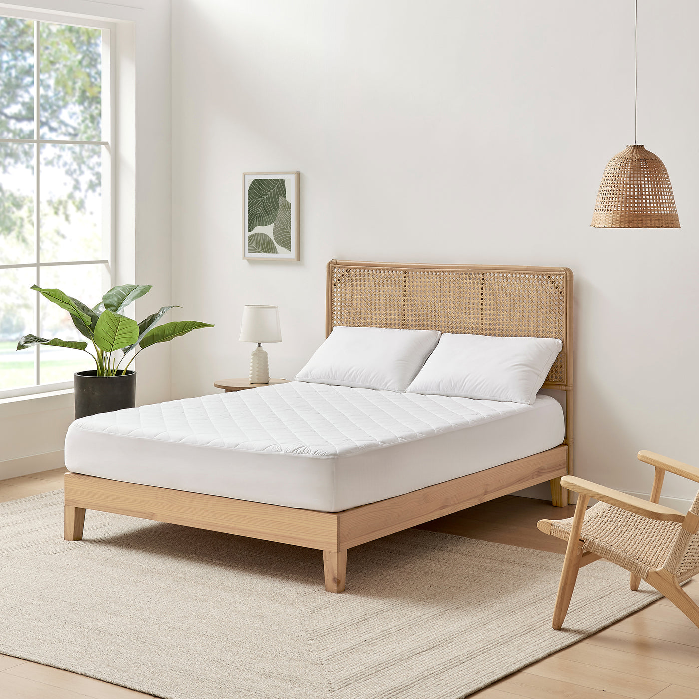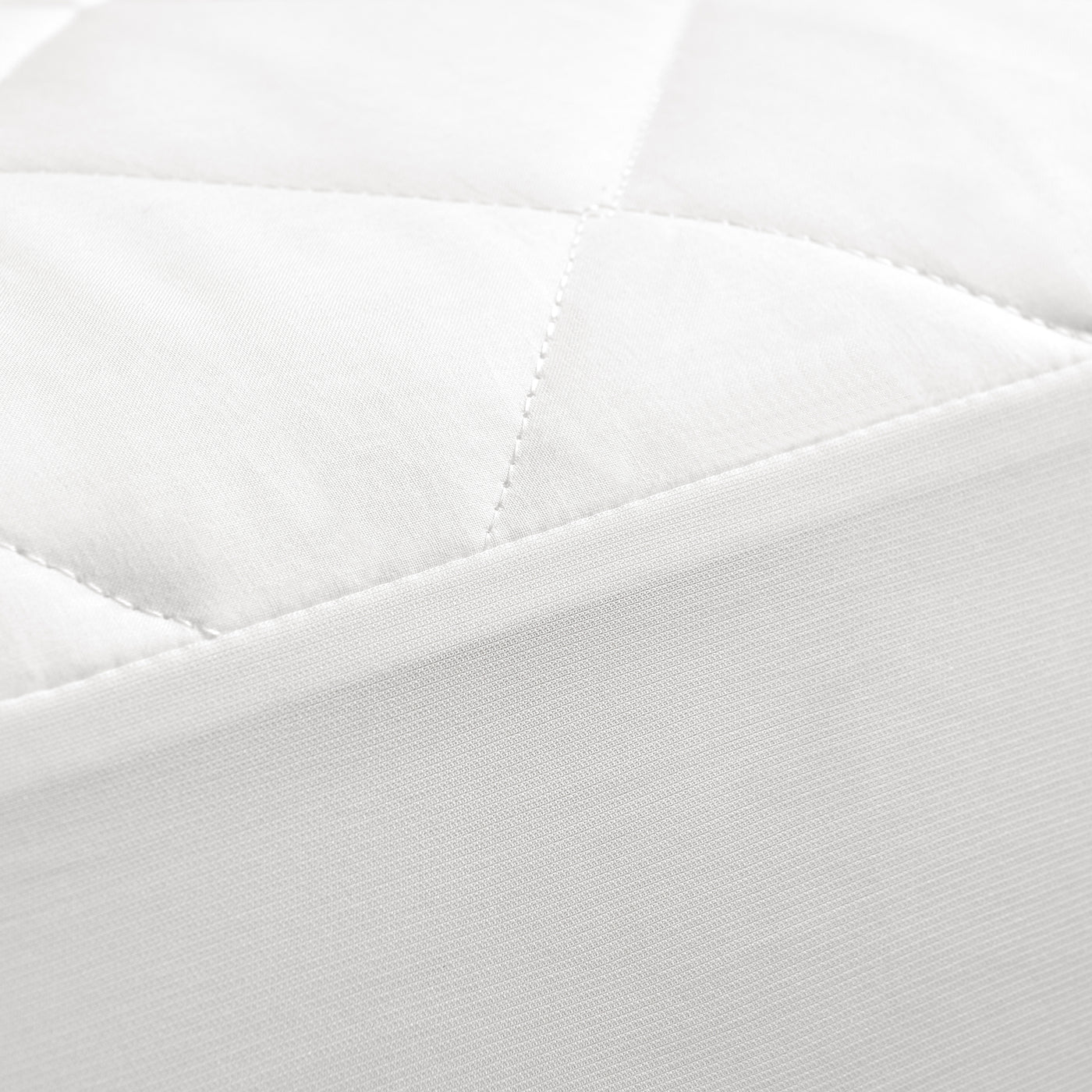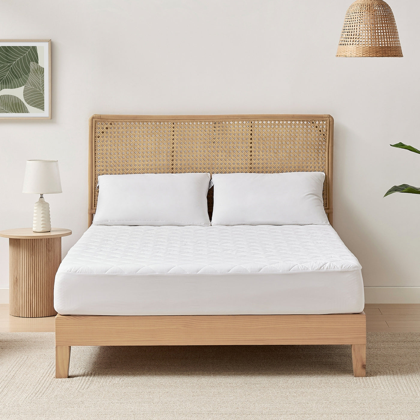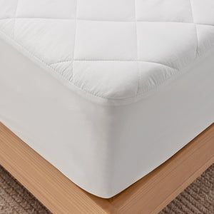 Ensure a healthier, allergy-free sleep with the ESSN x HealthGuard Mattress Protector. Featuring a soft quilted top with a cotton cover with a 15cm diamond stitch pattern, it offers extra comfort and durability. The waterproof backing protects against spills and stains, while the hypoallergenic, antimicrobial HealthGuard treatment prevents dust mites and bacteria.Designed for a secure fit, the 35cm deep jersey knit skirt elastic stretches to suit most mattresses. Machine washable and easy to maintain, this protector keeps your bed fresh, clean and well-protected.Features• Soft cotton top with quilted diamond stitching for breathability and comfort• HealthGuard-treated to resist dust mites, bacteria, and allergens• 35cm deep stretch skirt fits most mattresses securely• Machine washable for easy care and lasting freshness• Durable design with optimal airflow and moisture protectionHealthGuard Treatment Benefits• Anti-dust mite protection helps reduce common allergy and asthma triggers• Antibacterial and antimicrobial inhibit the growth of bacteria, mould, and mildew• Hypoallergenic and long-lasting, so it's gentle on sensitive skin with enduring effectivenessMaterialTop: CottonReverse: Polyurethane backingSkirt: PolyesterFill: PolyesterSizesSingle 91 x 190 + 35cmDouble 137 x 190 + 35cmQueen 152 x 203 + 35cmKing 180 x 203 + 35cmKing Single 106 x 203 + 35cmCare InstructionsMachine wash cold separately. Gentle wash cycle. Use mild detergent, use non-chlorine bleach when needed. Do not iron. Do not dry clean. Tumble dry low.Made in China