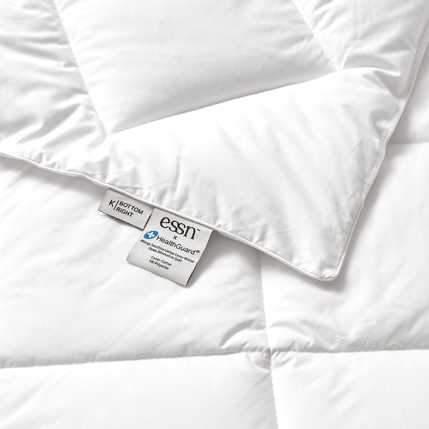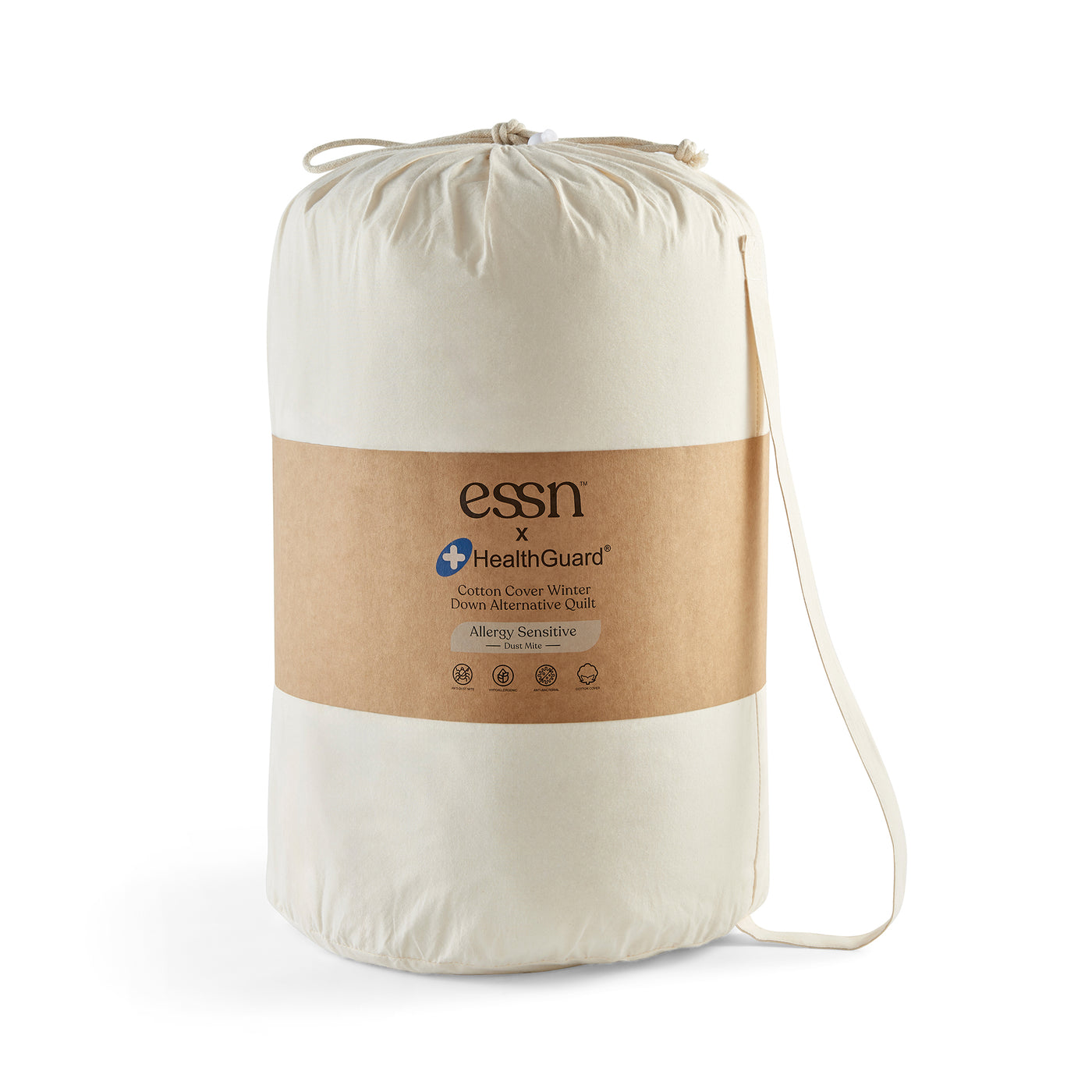 Stay warm and sleep soundly through the colder months with the ESSN HealthGuard Allergy Sensitive Winter Quilt. Designed for reliable winter comfort, this quilt features a soft, breathable cotton cover and a lofty 500gsm hypoallergenic down alternative fill that delivers lasting warmth without heaviness. Treated with Australian-made HealthGuard technology, it offers effective protection against dust mites, bacteria, and allergens - ideal for those with sensitivities. With its premium materials and thoughtful design, this quilt combines seasonal warmth with enhanced sleep quality night after night.Features• Soft and breathable cotton cover for all-night comfort• 500gsm hypoallergenic down alternative fill for cosy winter warmth• Treated with Australian-made HealthGuard to resist dust mites, bacteria, and allergens• Hypoallergenic and gentle on sensitive skin for a healthier sleep• Durable and machine washable for easy, everyday careHealthGuard Treatment Benefits• Anti-dust mite protection helps reduce common allergy and asthma triggers• Antibacterial and antimicrobial inhibit the growth of bacteria, mould, and mildew• Hypoallergenic and long-lasting, so it's gentle on sensitive skin with enduring effectivenessSizeSingle 140 x 210cmKing Single 160 x 210cmDouble 180 x 210cmQueen 210 x 210cmKing 210 x 240cmSuper King 270 x 240cmMaterialCover: CottonFill: 500gsm PolyesterCare InstructionsMachine wash cold separately. Gentle wash cycle. Use mild detergent. Use non-chlorine bleach when needed. Do not iron. Do not dry clean. Tumble dry low.Made in China