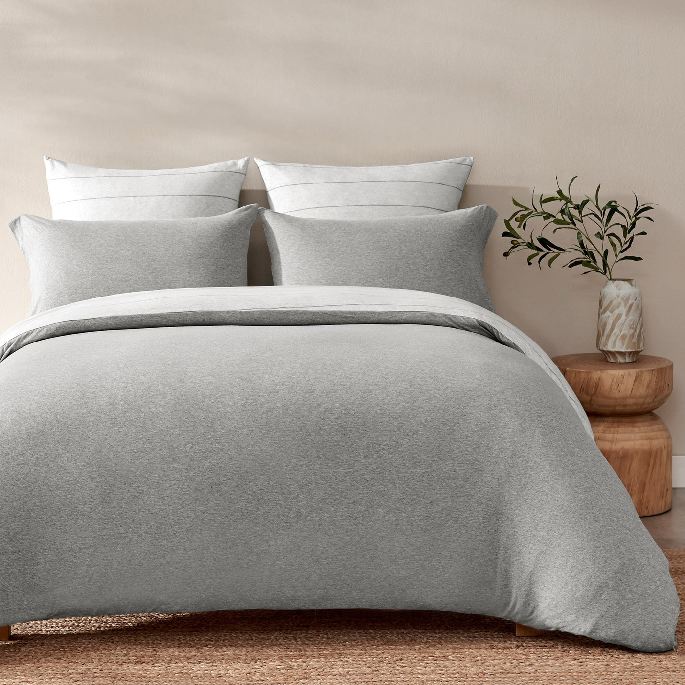 - Jersey Luxe 100% Cotton Reversible Quilt Cover Set Silver Grey