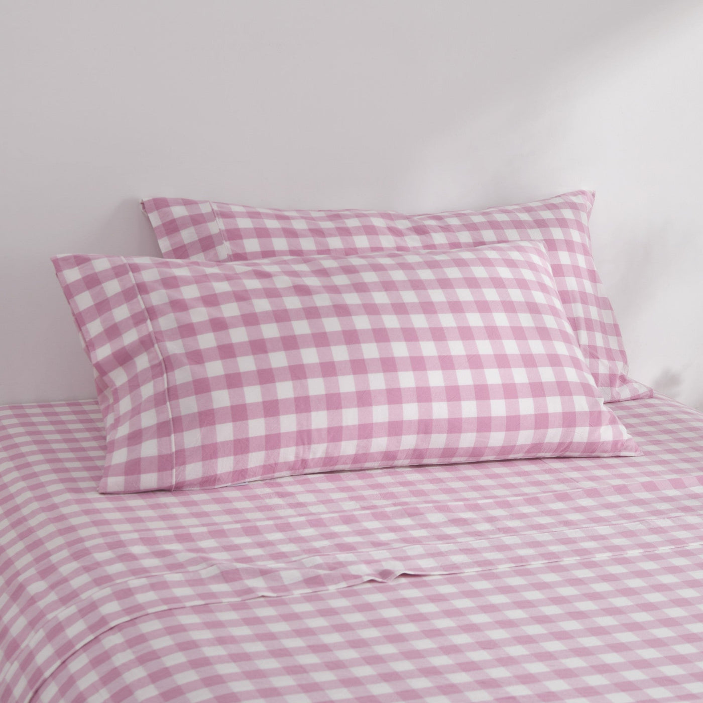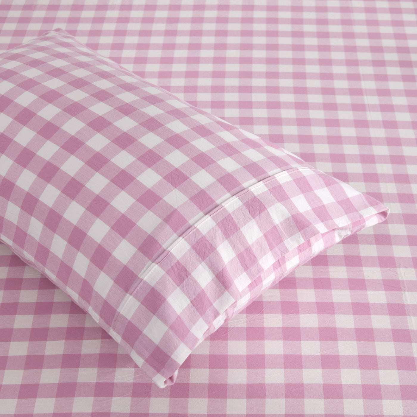 Lola Washed Cotton Yarn Dyed Gingham King Pillowcase Pearl Pink Twin Pack