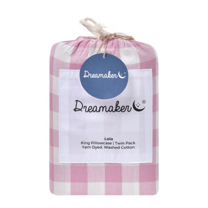 Bring effortless charm to your bedroom with the Dreamaker Lola Gingham King Pillowcases in a twin pack. Made from pre-washed yarn-dyed cotton, our gingham is woven to lock in rich colour and detail, while the washed cotton finish creates a lived-in, relaxed feel with a soft texture that only gets better with time.