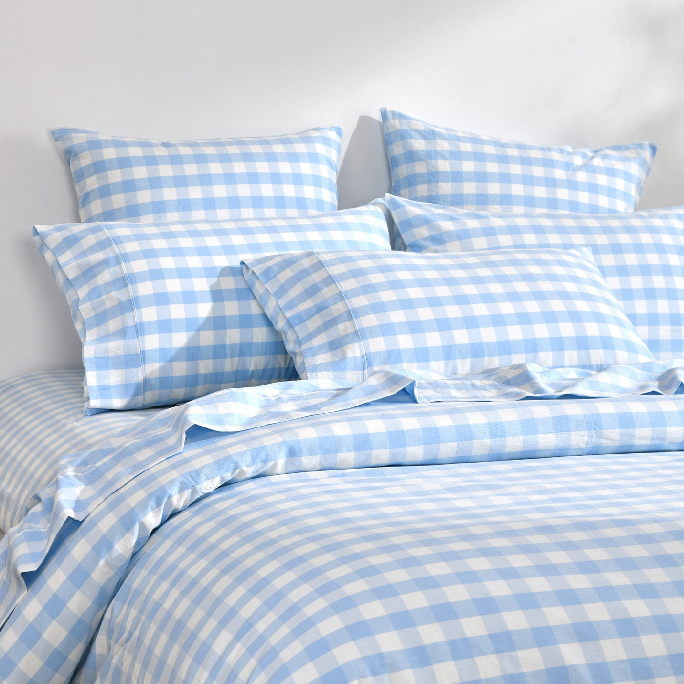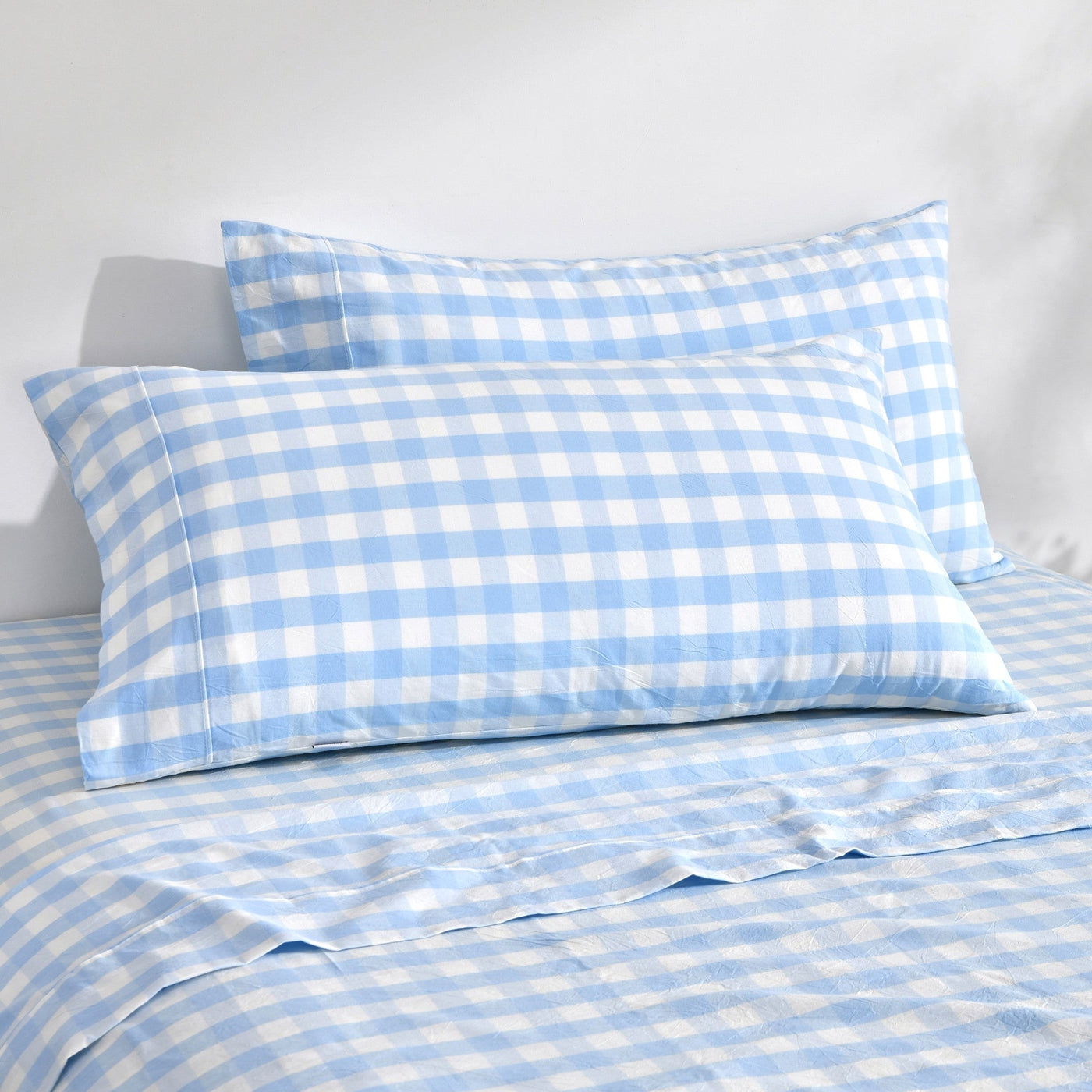 Lola Washed Cotton Yarn Dyed Gingham King Pillowcase Sky Twin Pack