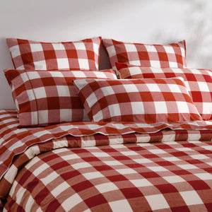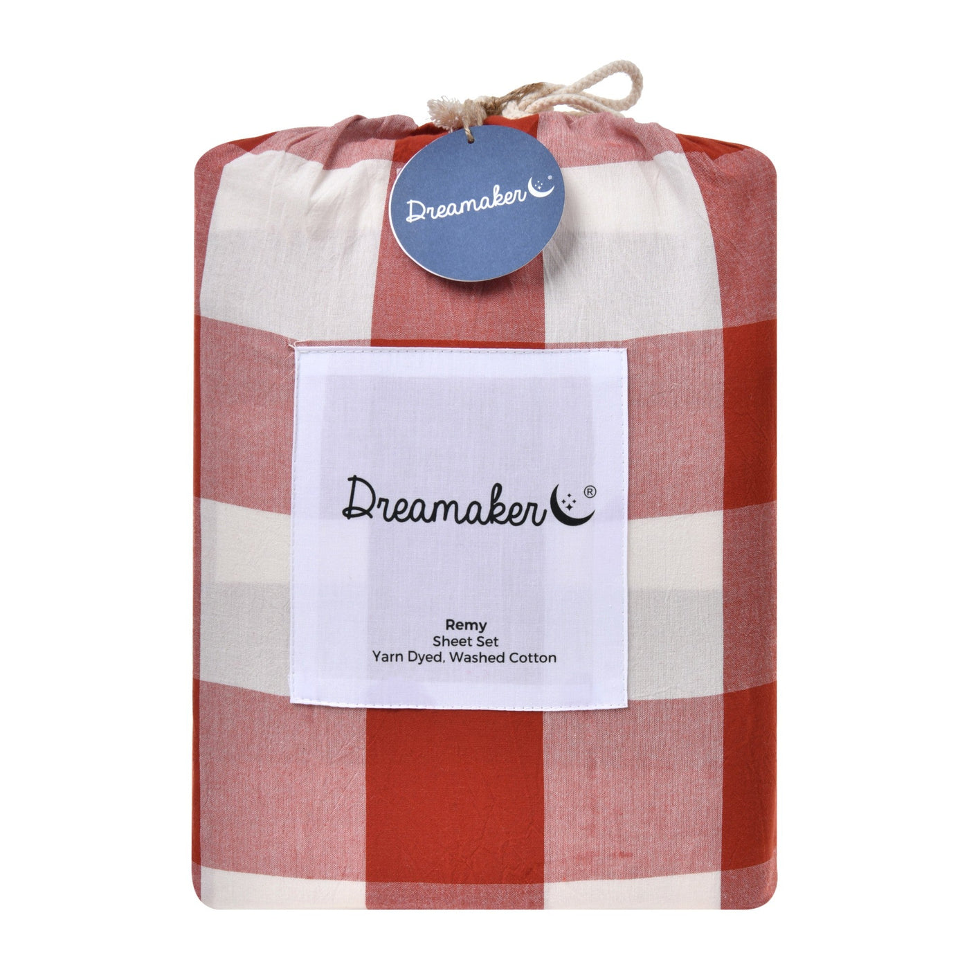 Bring rustic charm to your bedroom with the Dreamaker Remy Washed Cotton Sheet Set. Made from pre-washed yarn-dyed cotton, our large gingham is woven to lock in rich colour and detail, while the washed cotton finish creates a lived-in, relaxed feel with a soft texture that only gets better with time. Each set comes with a 40cm depth fitted sheet, and matching flat sheet and pillowcases.Features• Yarn-dyed cotton for long lasting colour• Woven giant gingham pattern• Ultra-soft, breathable washed cotton• Machine washable• Includes cloth bag for easy storage• OEKO-TEX certified - free from harmful substances• Mix and match our Washed Cotton bedding setsSizeSingle - Flat Sheet 180 x 260cm | Fitted Sheet 91 x 193 + 40cm | 1 Pillowcase 48 x 73cmKing Single - Flat Sheet 200 x 260cm | Fitted Sheet 107 x 203 + 40cm | 1 Pillowcase 48 x 73cmDouble - Flat Sheet 228 x 260cm | Fitted Sheet 137 x 193 + 40cm | 2 Pillowcases 48 x 73cmQueen - Flat Sheet 255 x 265cm | Fitted Sheet 152 x 203 + 40cm | 2 Pillowcases 48 x 73cmKing - Flat Sheet 275 x 265cm | Fitted Sheet 183 x 203 + 40cm | 2 Pillowcases 48 x 73cmSuper King - Flat Sheet 305 x 265cm | Fitted Sheet 203 x 203 + 40cm | 2 Pillowcases 48 x 73cmMaterials100% washed cotton, yarn dyed.Care InstructionsCold gentle machine wash separately before use. Wash with similar colours. Do not bleach or soak. Line dry in shade. Warm iron on reverse if required. Do not dry clean.Designed in Australia.Made in China.