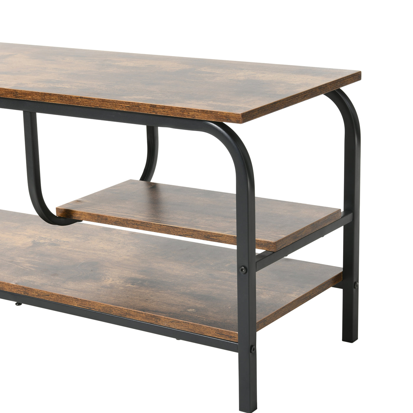 Add rustic charm to your home with the Sherwood Rustic Wooden TV Unit. Featuring a dark wood finish and sturdy metal frame, this unit combines durability with a timeless aesthetic. Its coated particle board construction is easy to clean, while the open-shelf layout offers practical storage for entertainment devices. Designed to hold TVs up to 80cm wide, it includes three spacious shelves for consoles, decor, or accessories. Whether your style leans coastal, cottage, or urban farmhouse, this piece brings warmth and functionality to any living room setup. Features• Dark timber look with vintage appeal• High-quality particle board• Three large open shelves• Durable metal frame• Easy to prepare with basic tools Size 90 x 35 x 43cm Material Coated wooden particle board with metal tubing (metal with coating) Care Instructions Wipe down with a cloth and keep dry. Made in China ??WARNING: Children have died from furniture toppling over. Always secure this furniture with an anchor device. Never allow children to stand, climb or hang on drawers, doors, or shelves; Never open more than one drawer at a time; Place heavy items down low; Never place a television on this furniture.