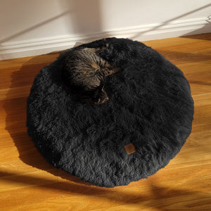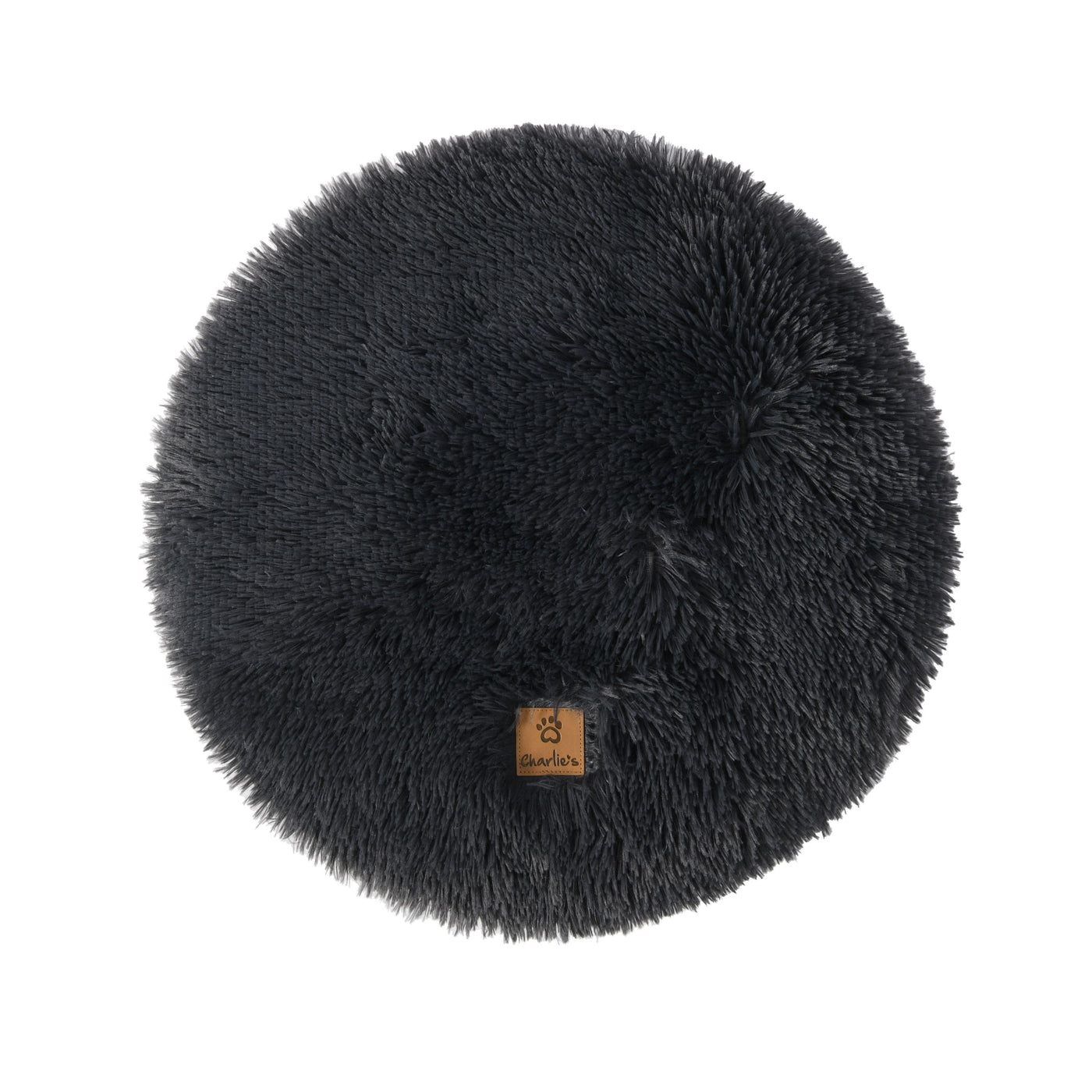 - Shaggy Faux Fur Round Padded Lounge Mat - Charcoal