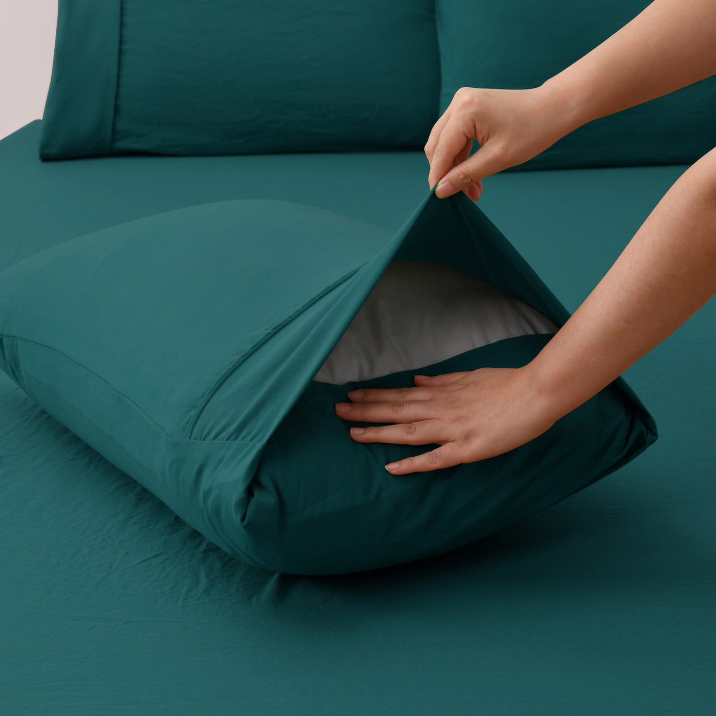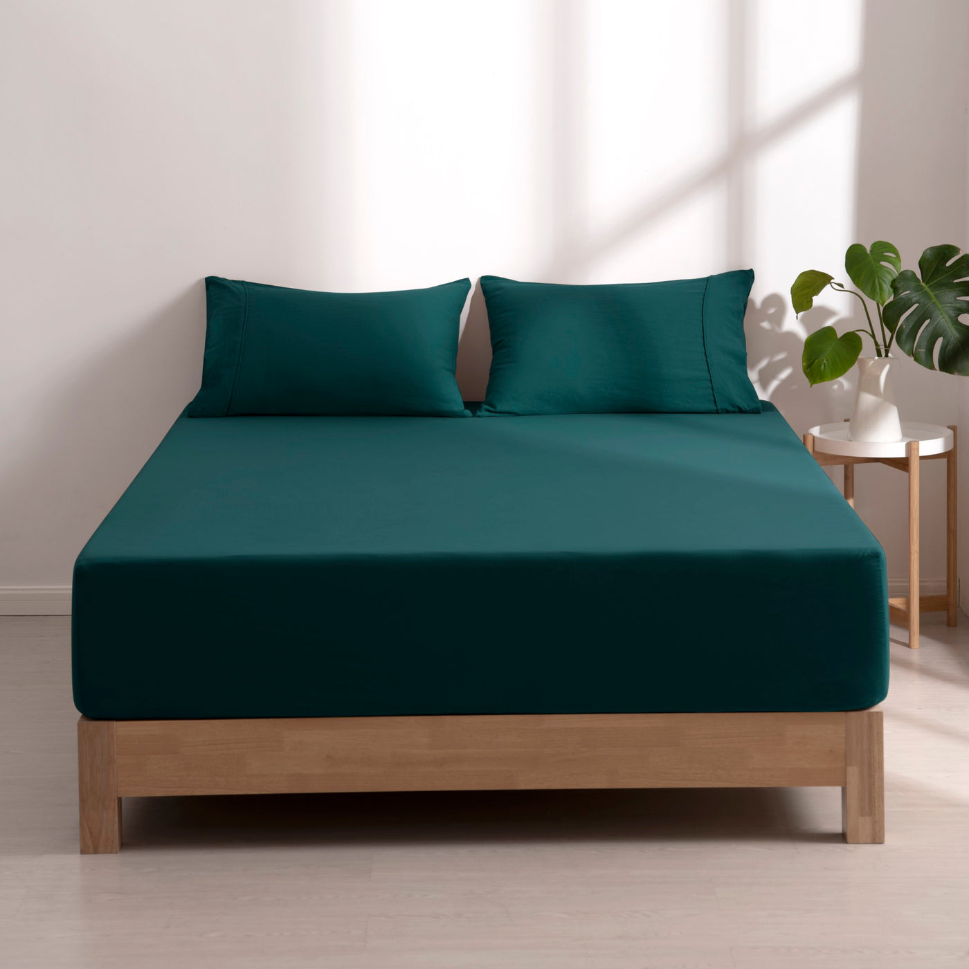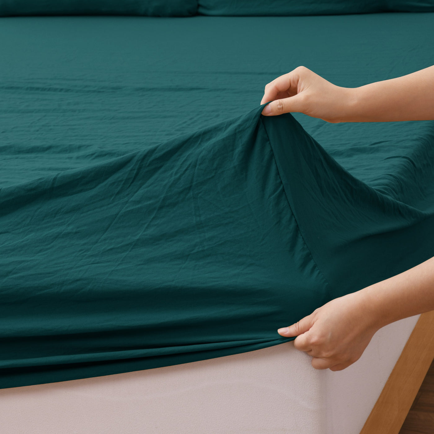 - Superfine Washed Microfibre Combo Fitted Sheet Set Teal