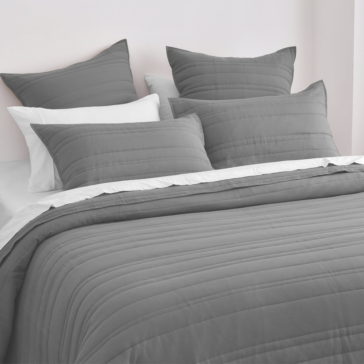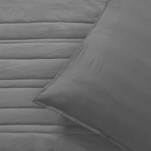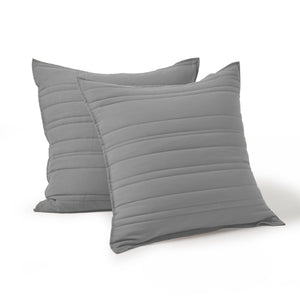 Superfine Washed Microfibre Stripe Quilted European Pillowcase Twin Pack Charcoal