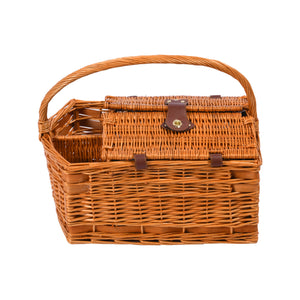 • Our picnic baskets are made from natural wicker. Keep away from heat sources as this may cause fading or ignite the basket.