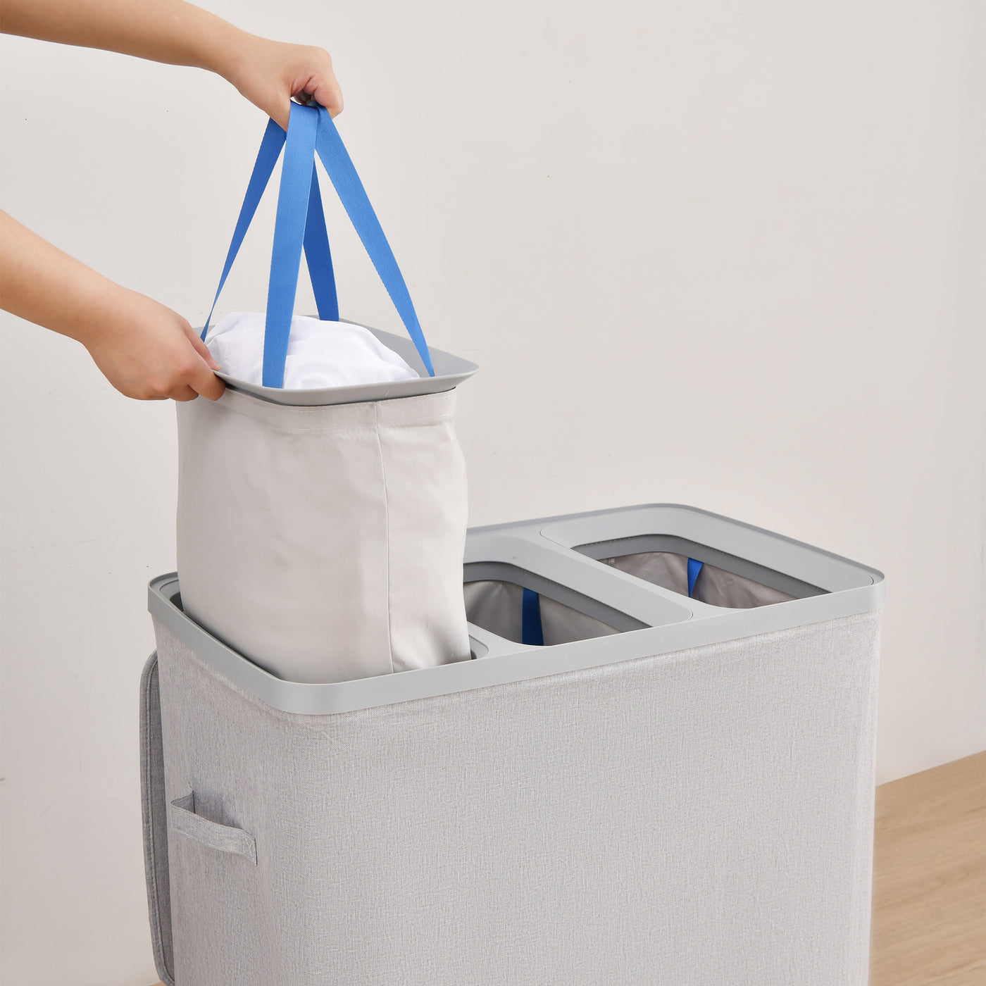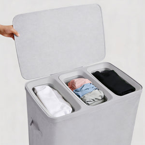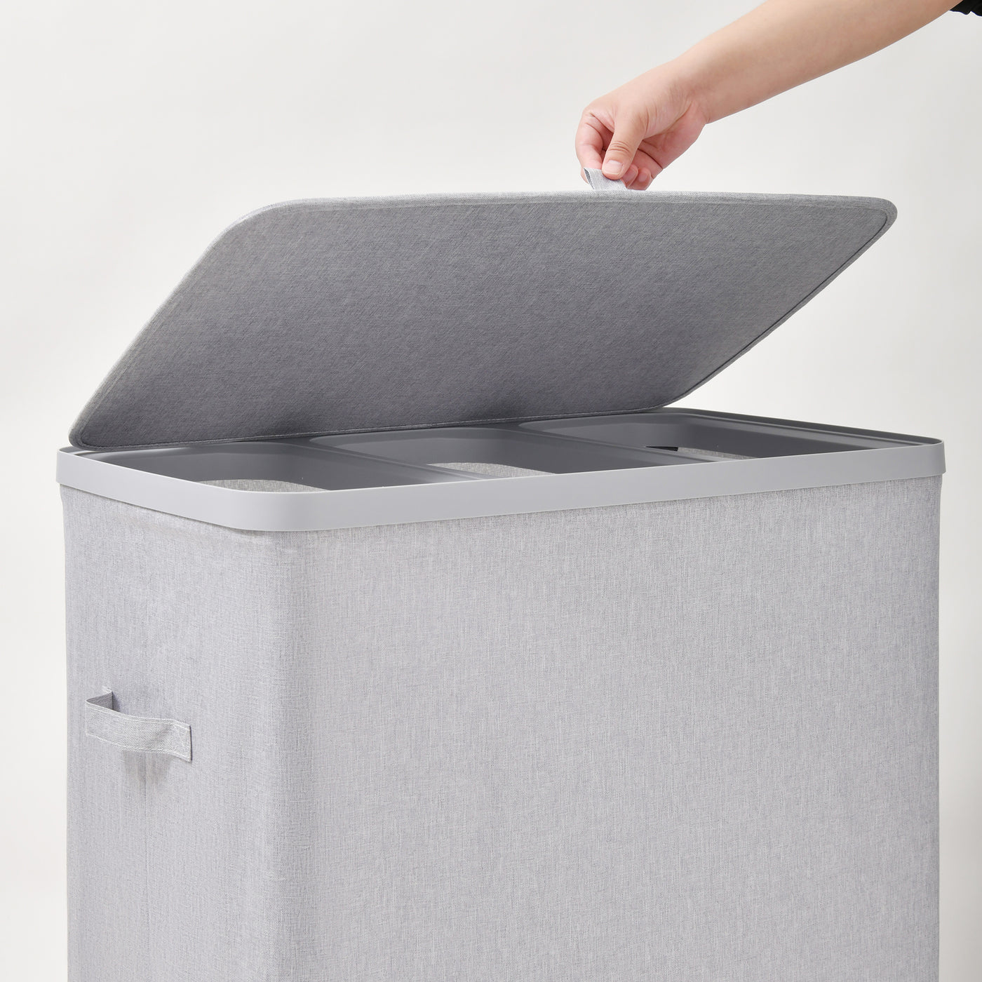 - Voyager 3-Section Laundry Hamper 120L Faux Linen 64x40x67cm Grey