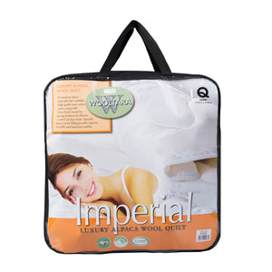 This 450gsm Wooltara Luxury Alpaca Wool Quilt is made with super-loft, washable alpaca wool filling. It is an ideal quilt for winter sleeping as alpaca wool features a hollow core which makes it lighter in weight but much warmer, offering optimal comfort. The quilt is filled with a blend of 30% alpaca wool sourced from Peru and 70% Australian wool and is covered with a superfine cotton sateen fabric. The Ultra-Fresh treated pure soft cotton sateen cover provides durability and comfort as well as effective antibacterial protection. This perfect blend of Alpaca Wool and Wool absorbs moisture while you sleep, keeping you dry and comfortable through the night. FEATURES: